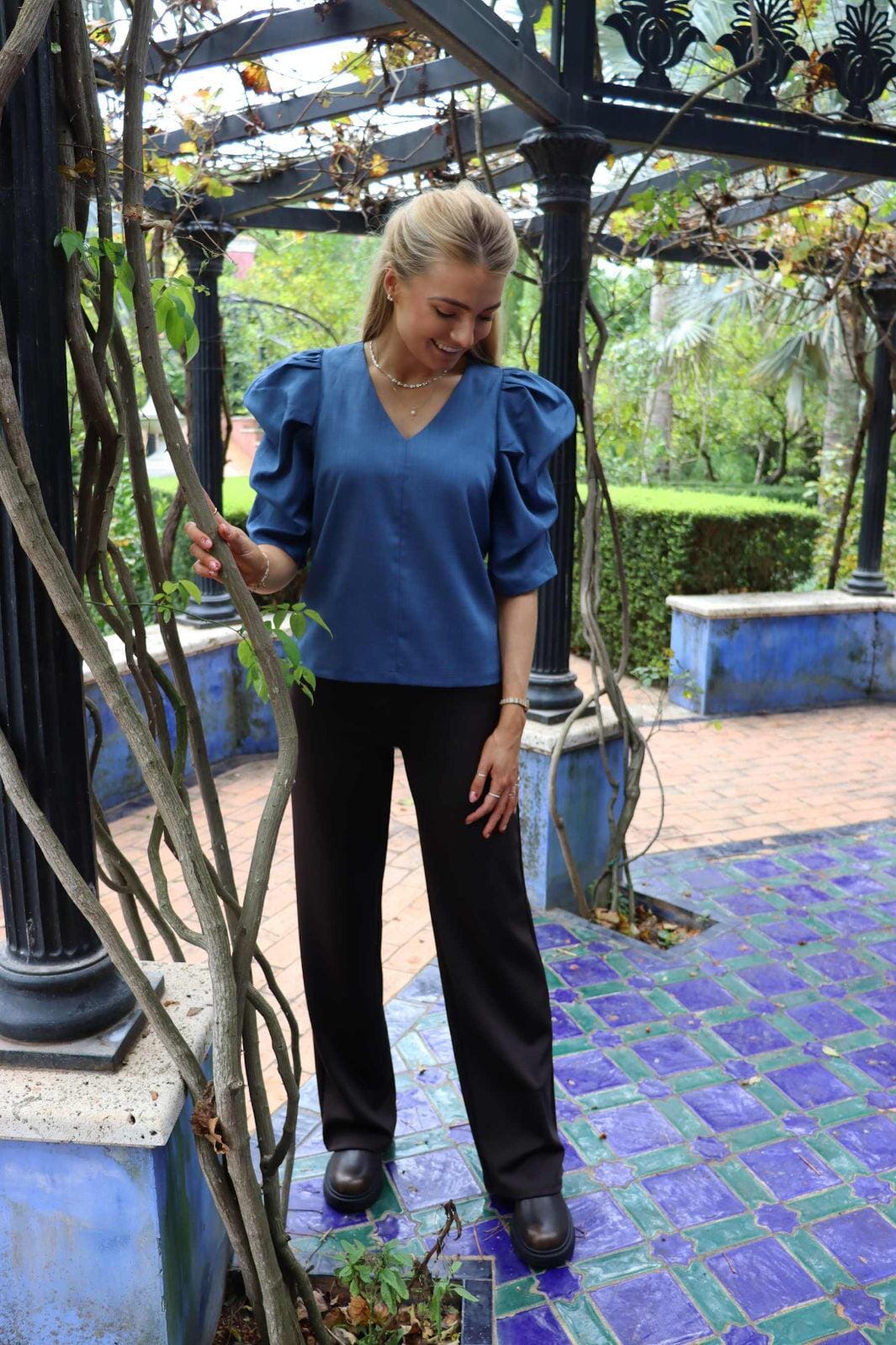 Braune weite Hose von Liberte, gefertigt aus einer Mischung aus Viskose, Polyester und Spandex. Die Hose hat eine lockere Passform und eignet sich sowohl für zu Hause als auch für entspannte Ausflüge.