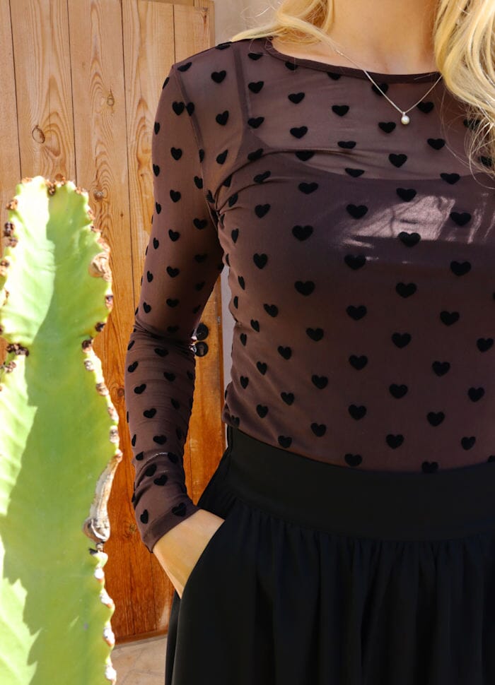 Liberte Mesh-Ls-Tshirt 22065 Farbe: Dark Brown Black Flock Heart