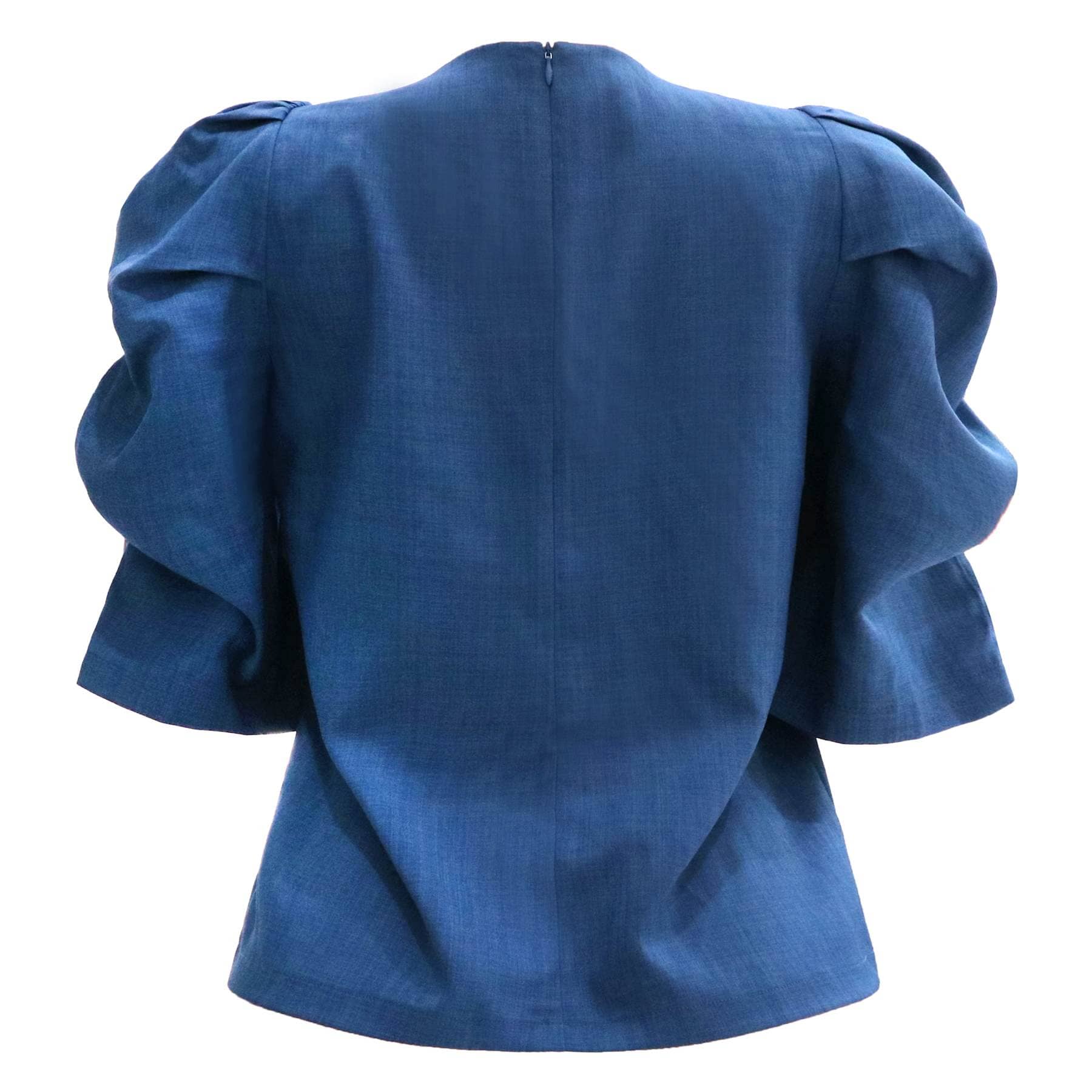 Bluse von Liberte in einem hellblauen Farbton, gefertigt aus 100 % Polyester. Die Bluse hat einen V-Ausschnitt und Puffärmel und eignet sich für formelle, legere und festliche Anlässe.
