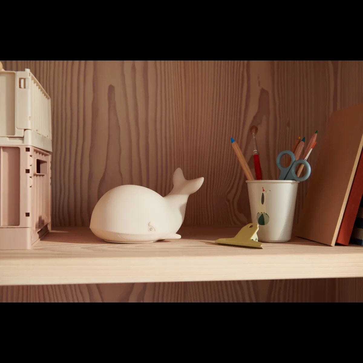 Walformige Nachtlampe in Sandfarbe von Liewood. Hergestellt aus weichem Silikon mit praktischer USB-C-Ladung und 12 Stunden Batterielaufzeit bei einer einzigen Ladung.