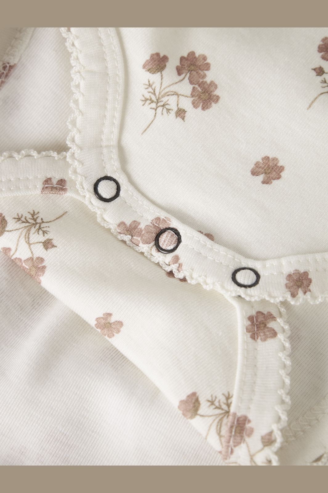 Bodykleid von Lil' Atelier mit Blumenprint in rosafarbenen Nuancen auf cremefarbenem Hintergrund. Das Produkt hat lange Ärmel und einen Rundhalsausschnitt.