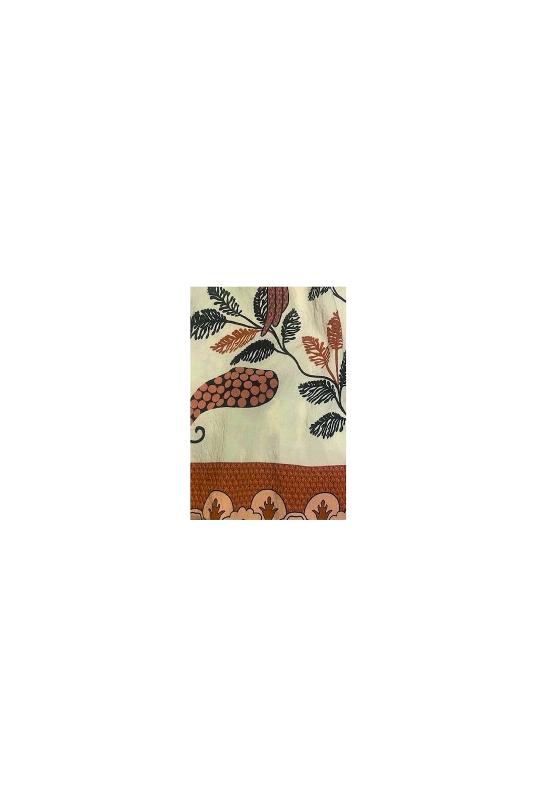 Cremfarbene Bluse von Lollys Laundry mit einem detaillierten Muster aus Paisley, Blumen und Punkten. Die Bluse hat einen klassischen Kragen und kurze Ärmel.
