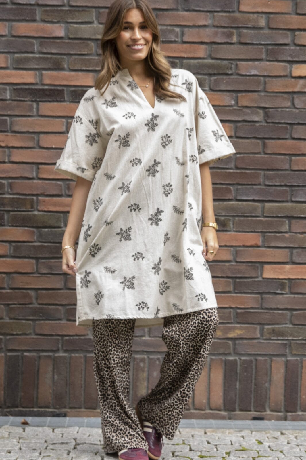 Hosen von Love & Divine aus 100% Polyester mit Leopardenmuster in braunen und beigen Nuancen. Die Hosen haben eine lockere Passform und einen breiten elastischen Bund in der Taille.