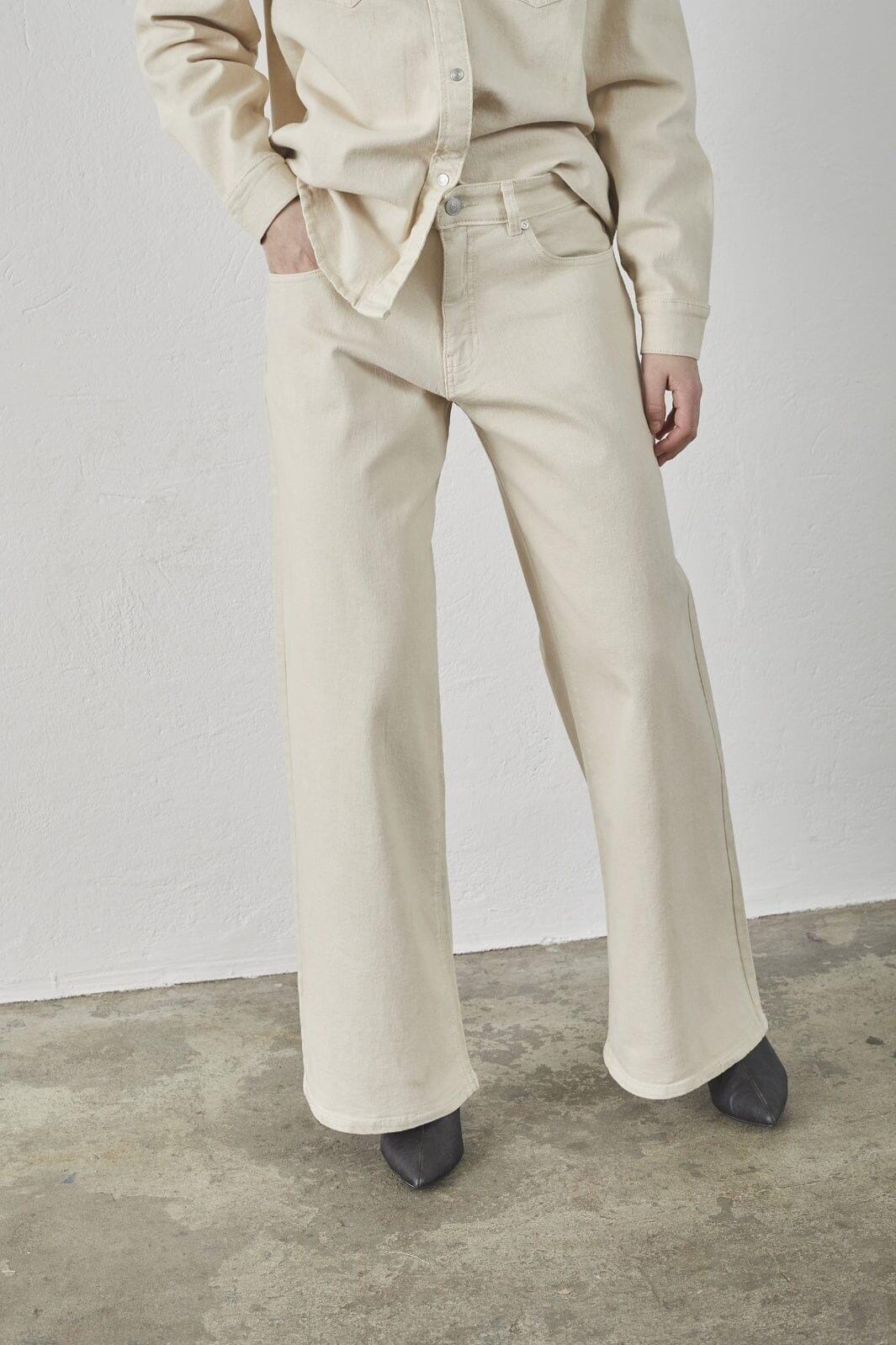 Hosen in hellem Beige von Love & Divine mit weitem Bein-Design. Die helle Porzellanfarbe macht die Hosen das ganze Jahr über leicht kombinierbar mit anderen Farben.