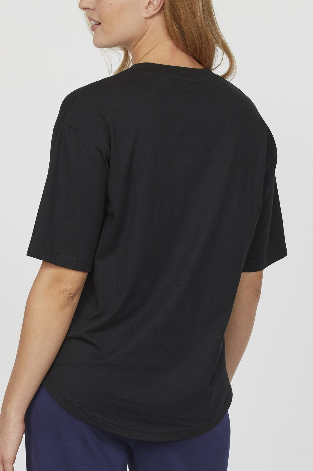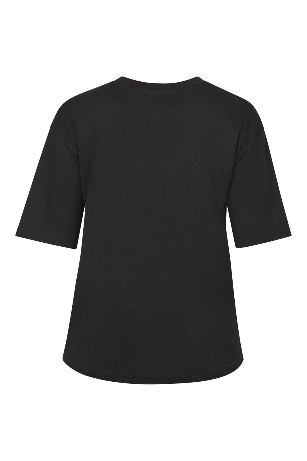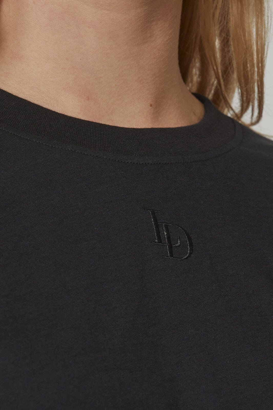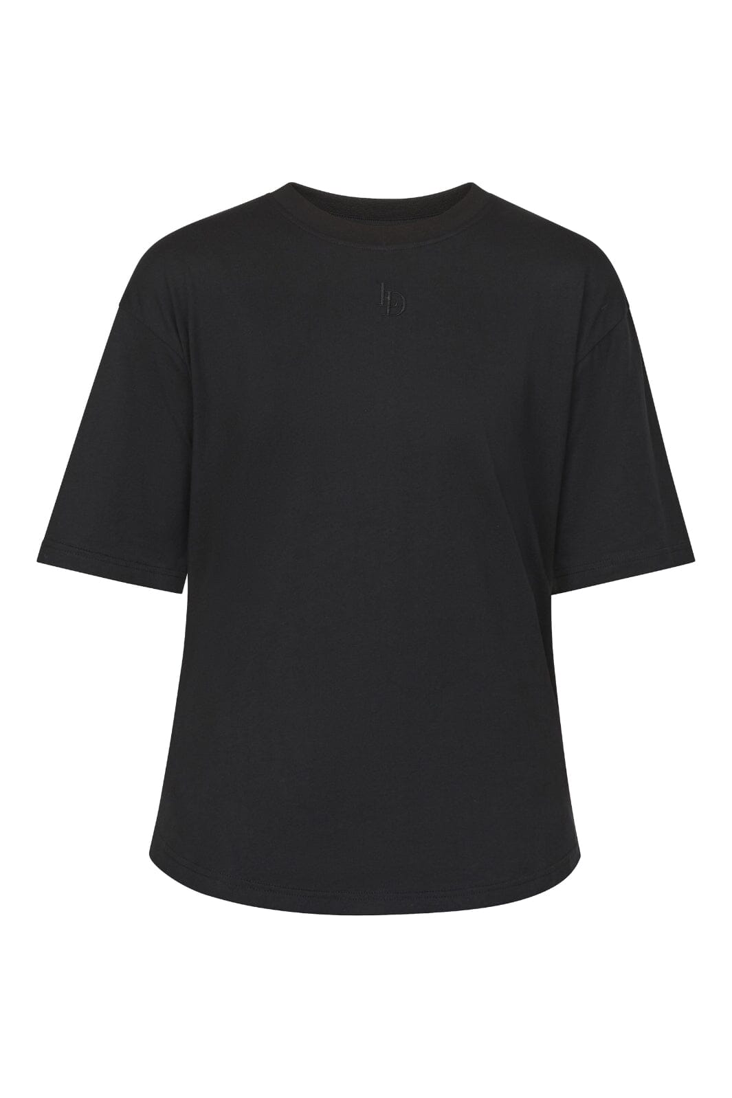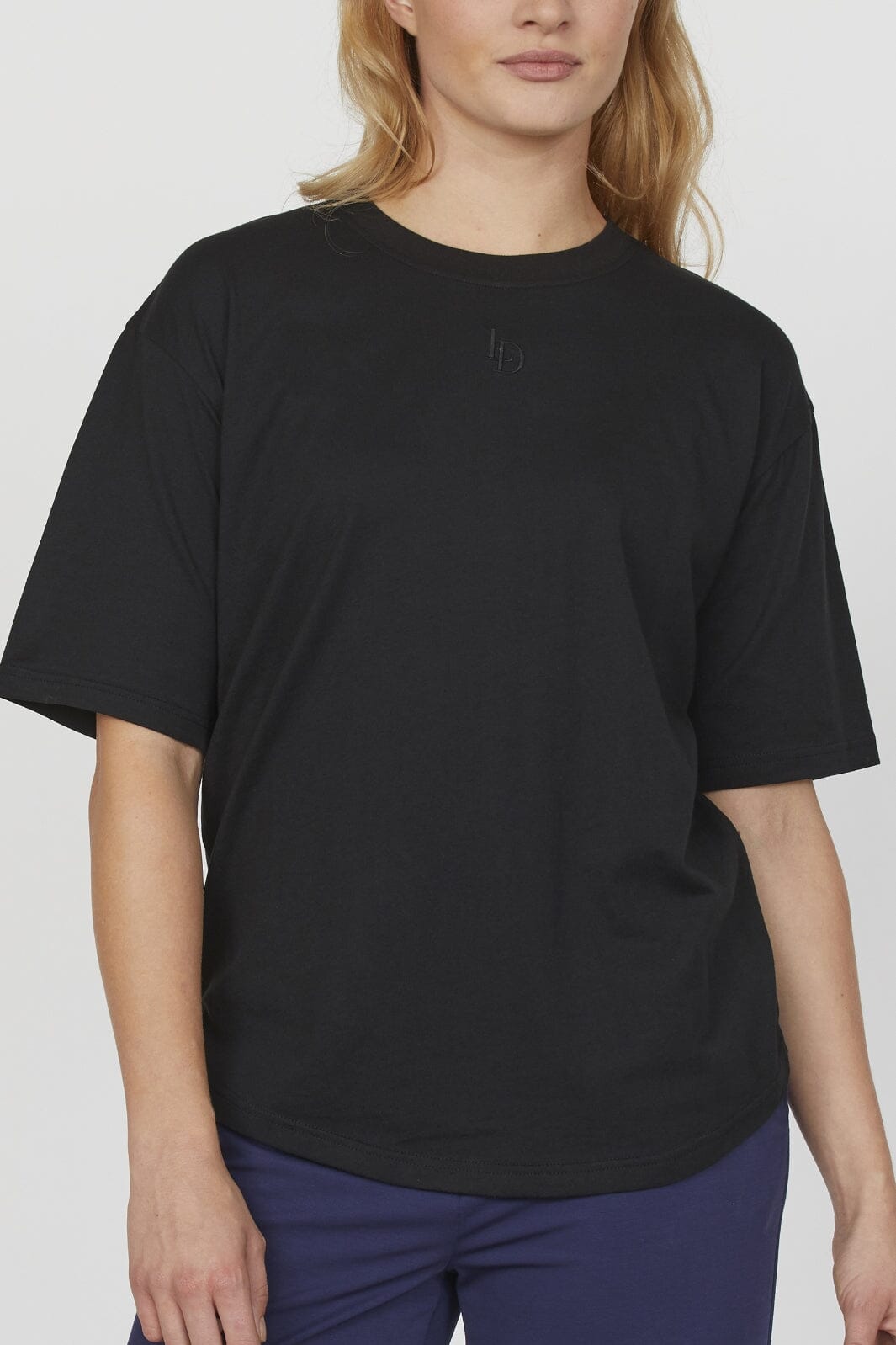 Schwarzes T-Shirt von Love & Divine mit Rundhalsausschnitt und kurzen Ärmeln. Das T-Shirt hat ein gesticktes LD-Logo auf der Vorderseite und eignet sich sowohl für das Training als auch für die Freizeit.