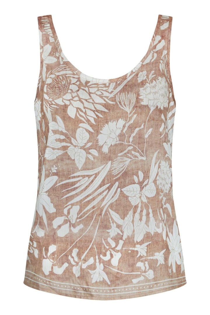 Ärmelloses Top von Love & Divine mit Blumenmuster in Puderfarben. Das Top hat eine lockere Passform und einen runden Halsausschnitt mit breiten Trägern.