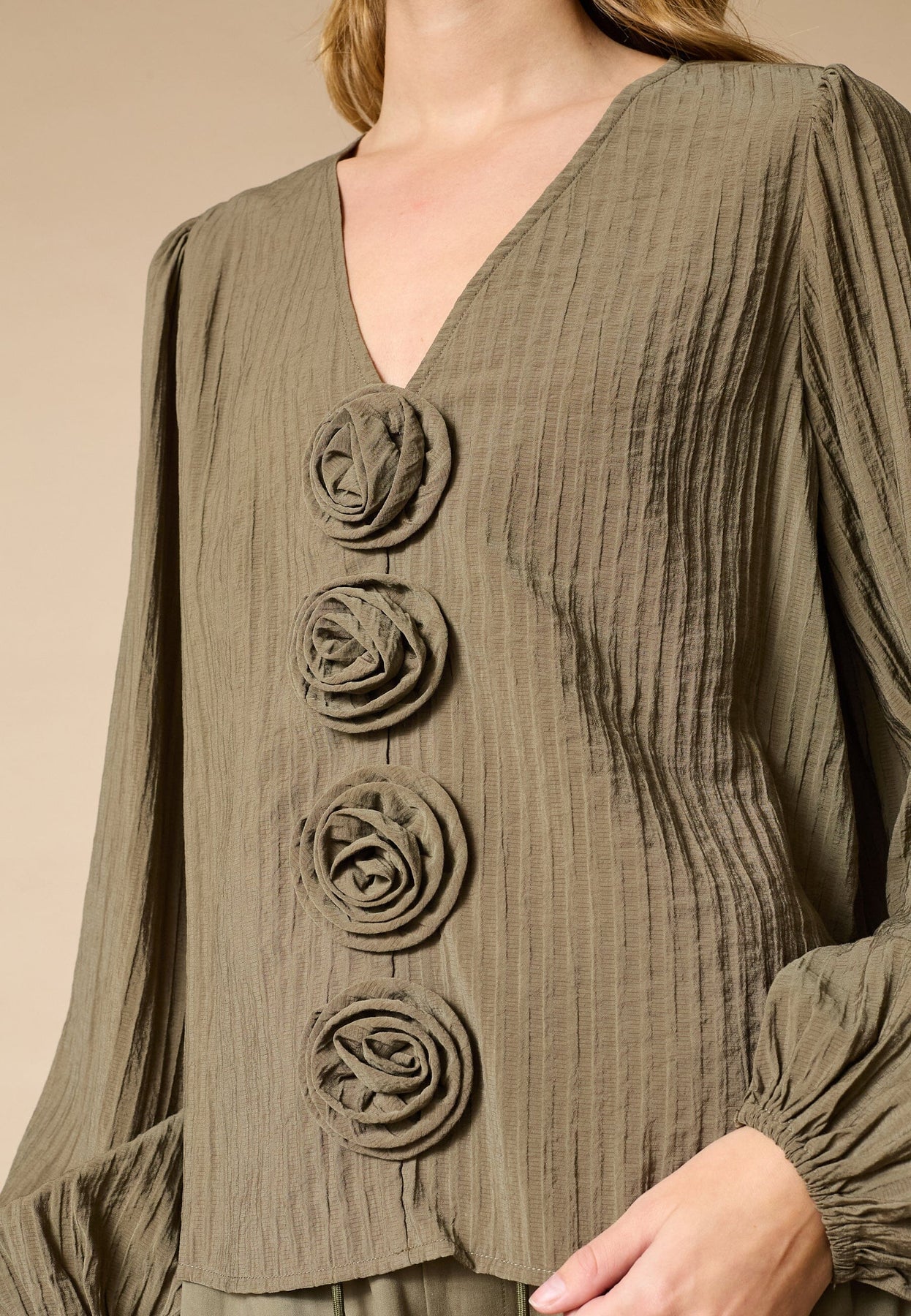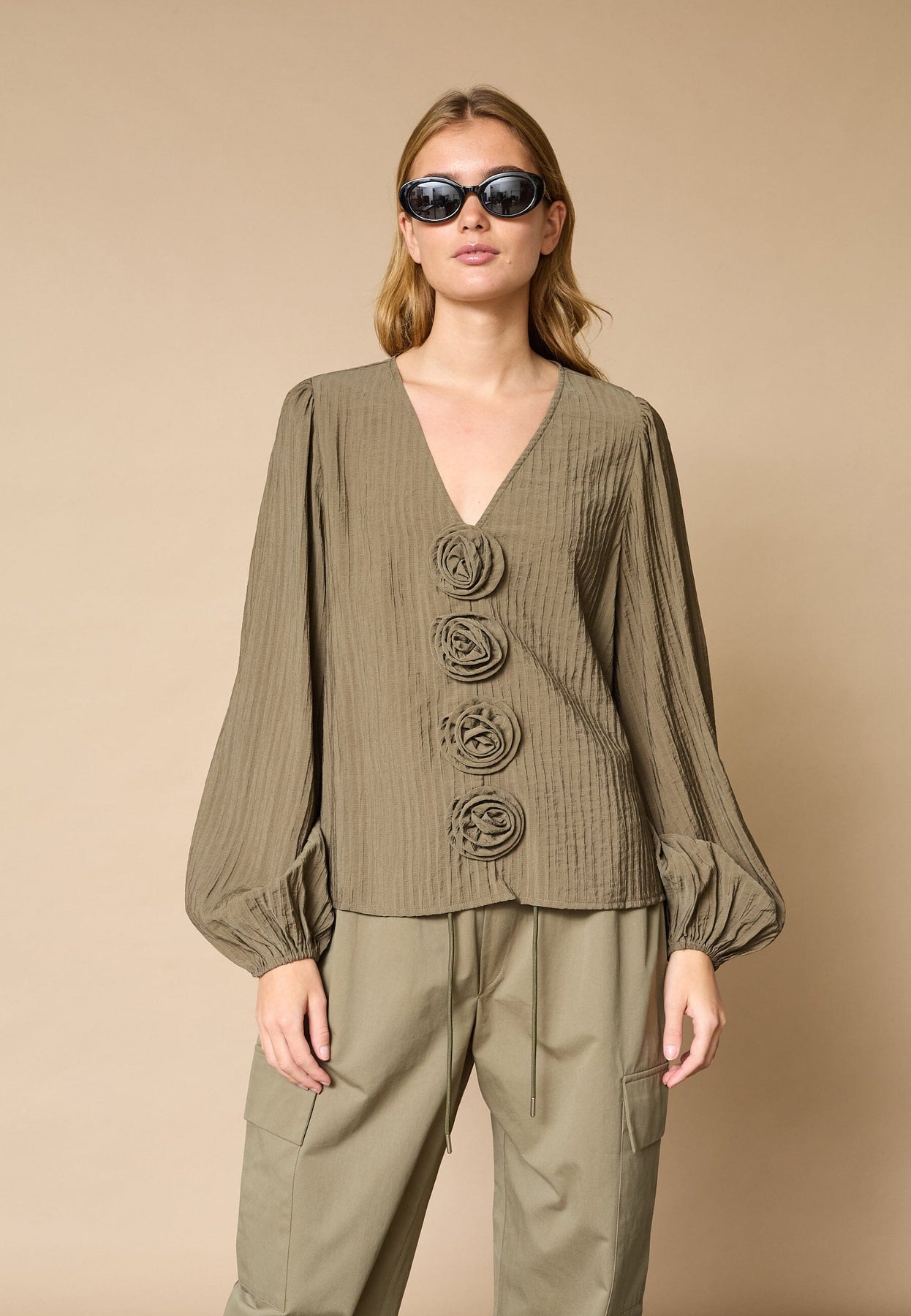 Bluse von Love & Divine in der Farbe Teak. Hergestellt aus 80 % Viskose und 20 % Polyamid.