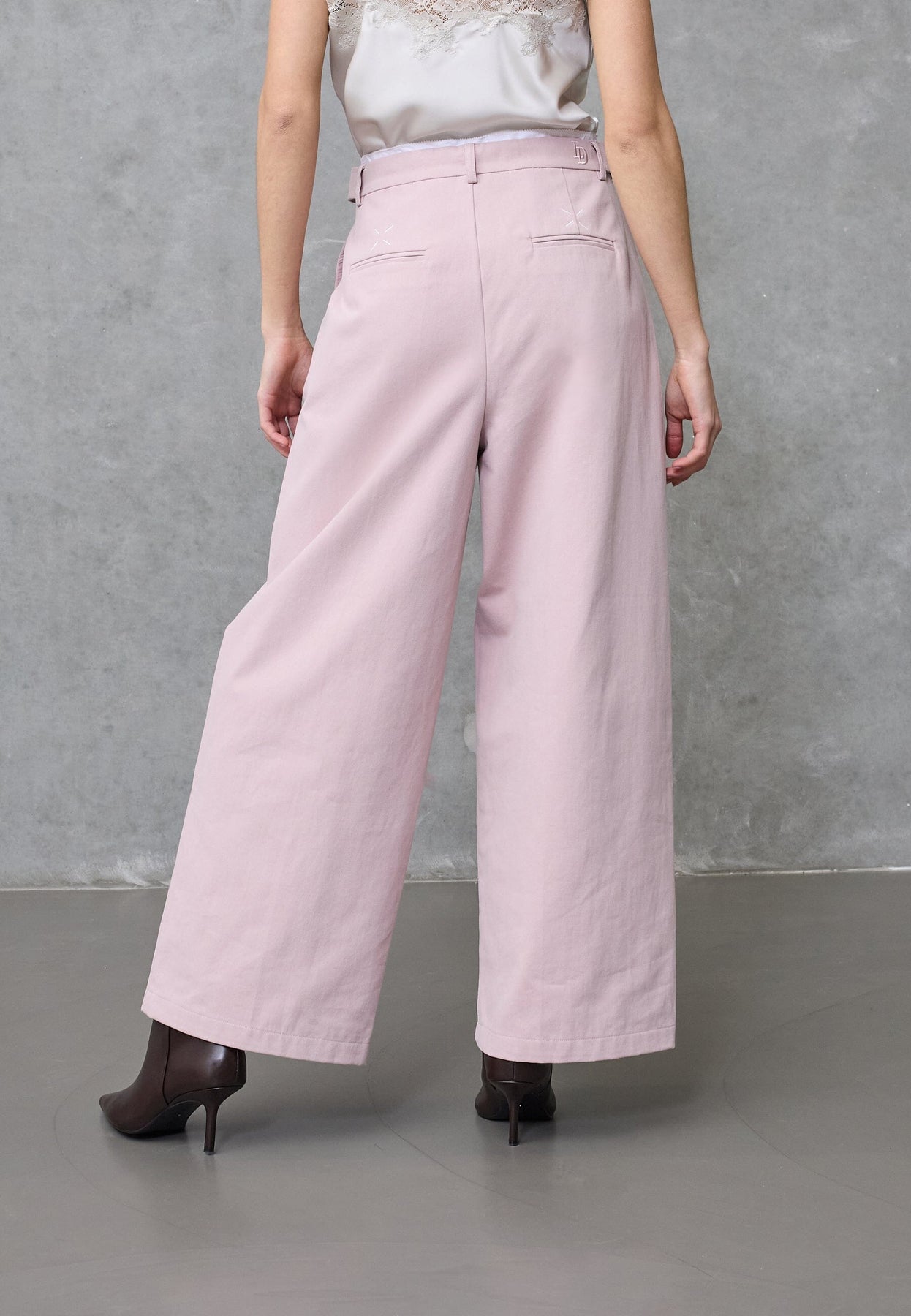 Lila Hose von Love & Divine aus 100 % Baumwolle. Die Hose hat weite Beine, eine hohe Taille und eine lockere Passform mit Stickerei- und Schnürdetails.