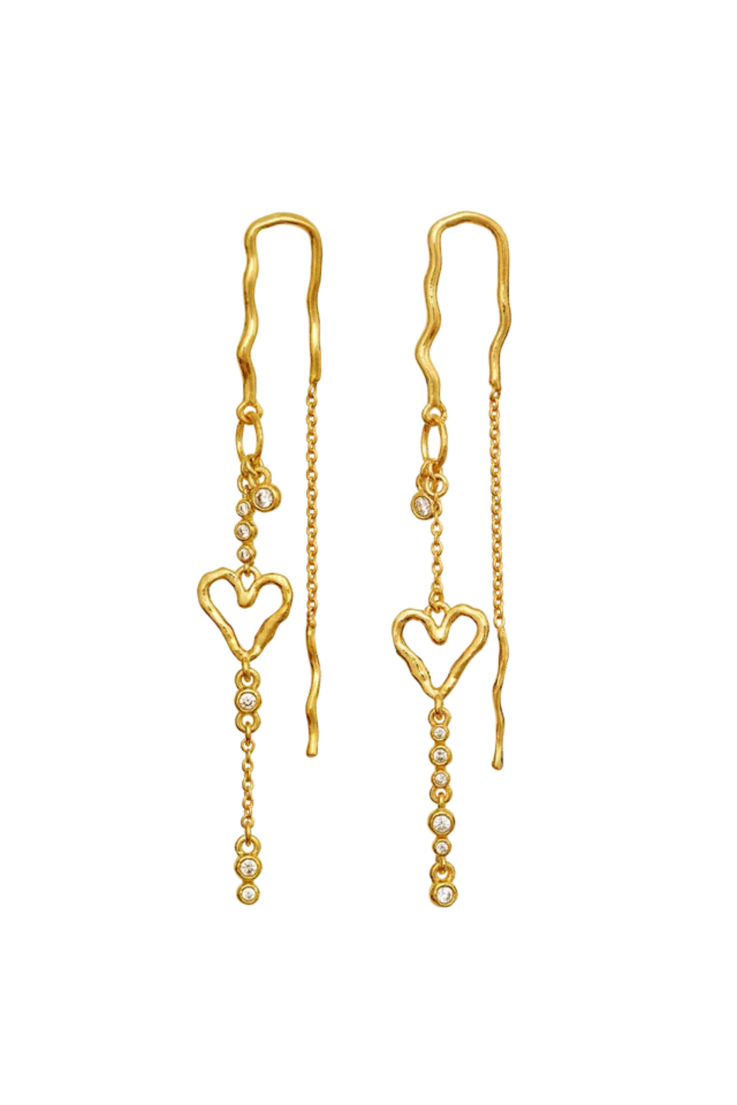 Ohrringe von Maanesten, gefertigt aus recyceltem Sterlingsilber, das mit 18 Karat Gold plattiert ist. Die Ohrringe sind mit weißen Zirkonia in einer schlanken Silhouette verziert.