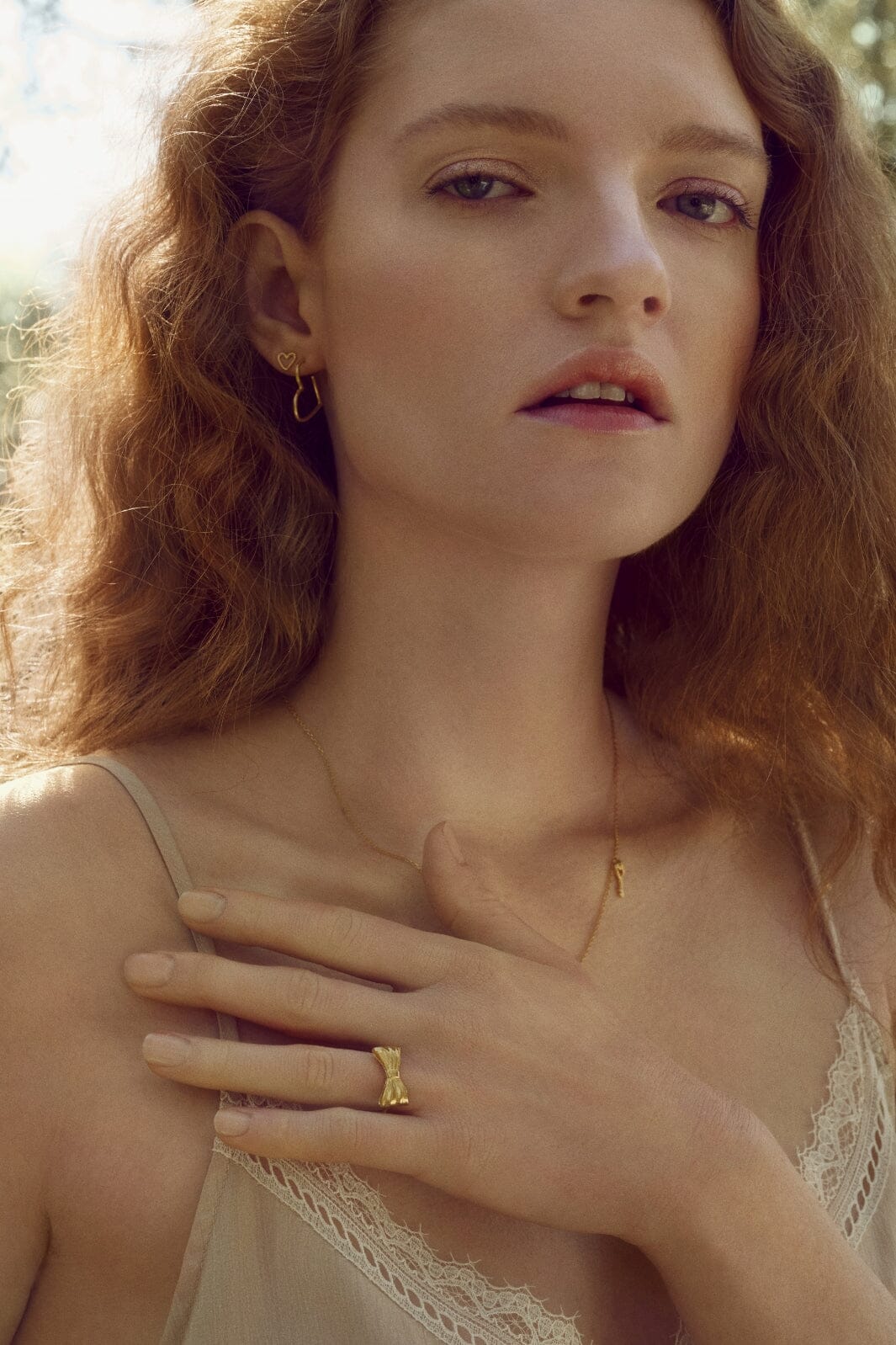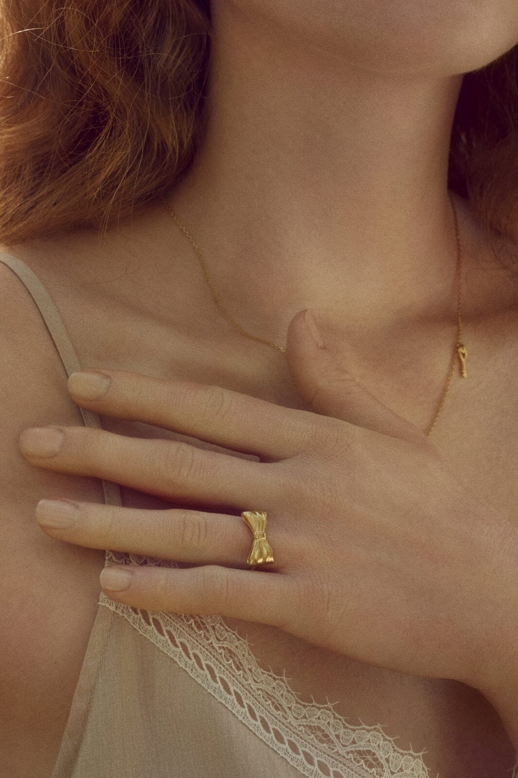 Goldplattierter Ring von Maanesten mit Schleifendesign. Der Ring besteht aus recyceltem Sterlingsilber mit 18 Karat Goldplattierung, die eine warme goldene Oberfläche verleiht.