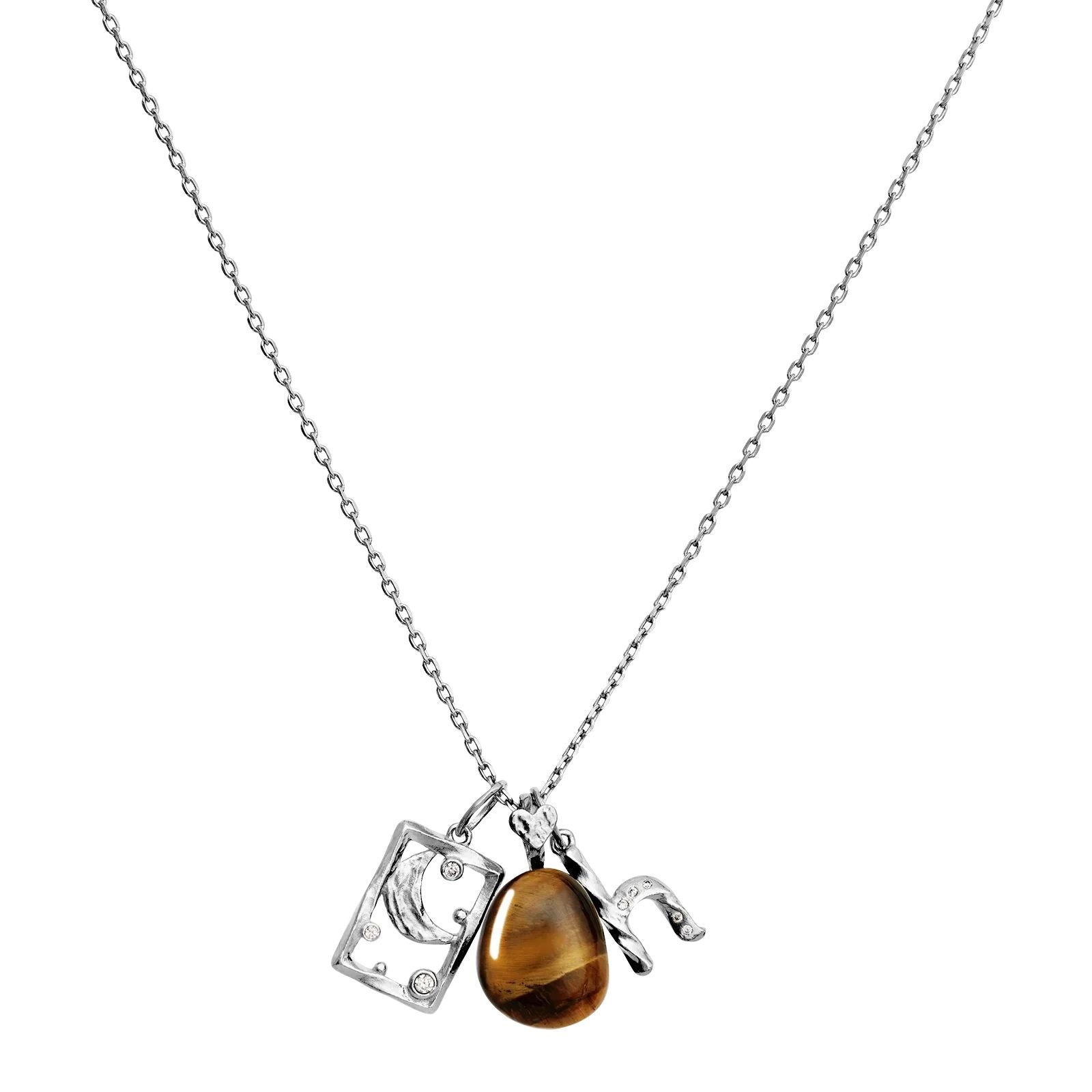 Anhänger von Maanesten mit einem tropfenförmigen Tigerauge-Stein in Gold- und Braunnuancen. Der Stein hat ein gestreiftes Muster und eine glatte Oberfläche. Der Anhänger hat eine herzförmige Öse.