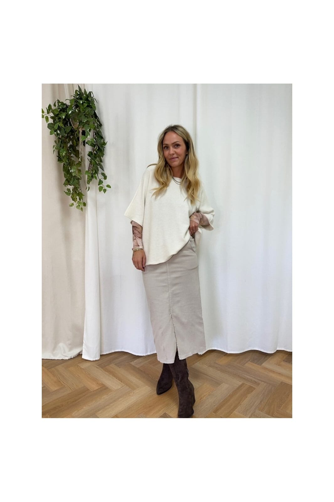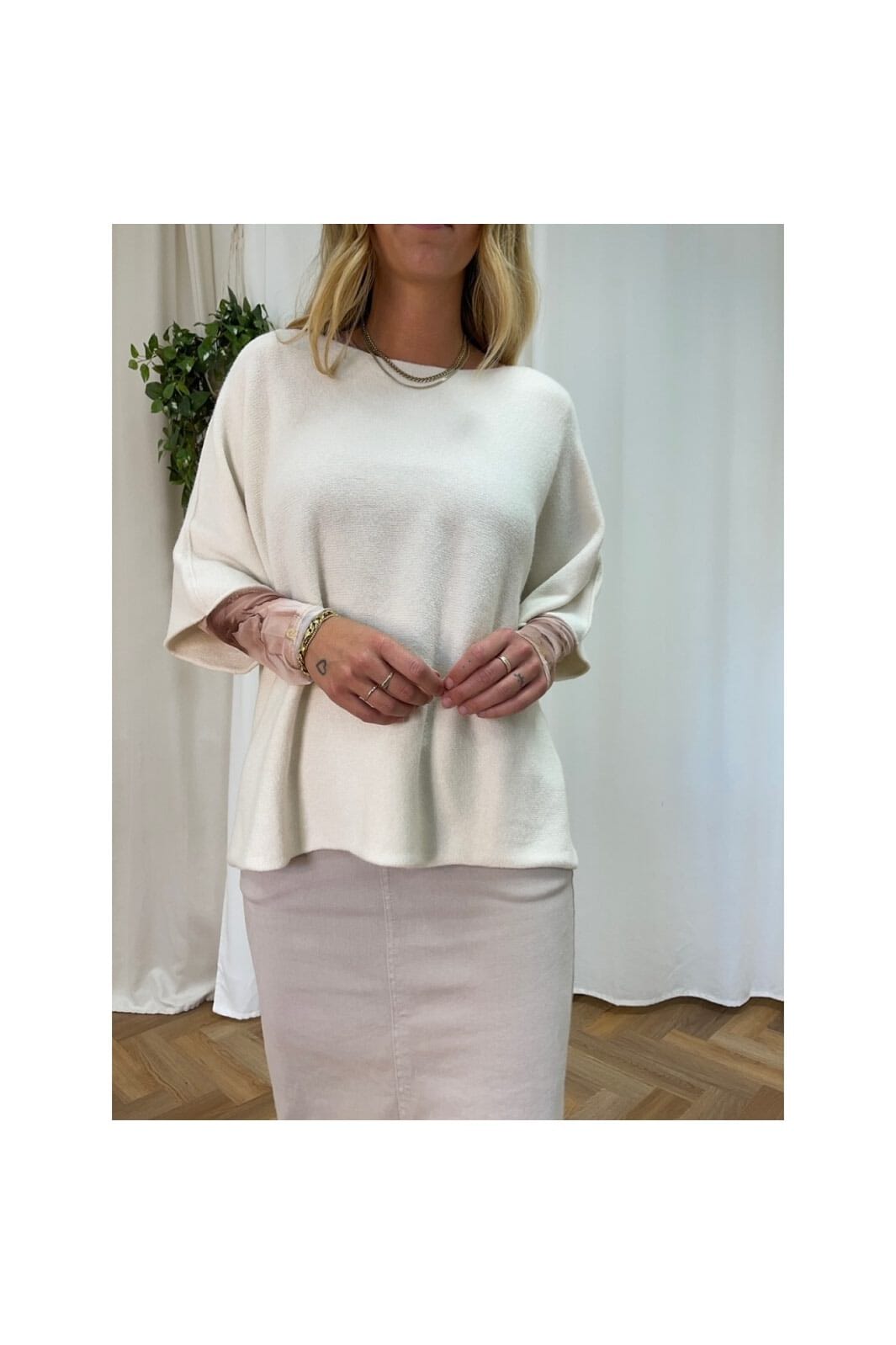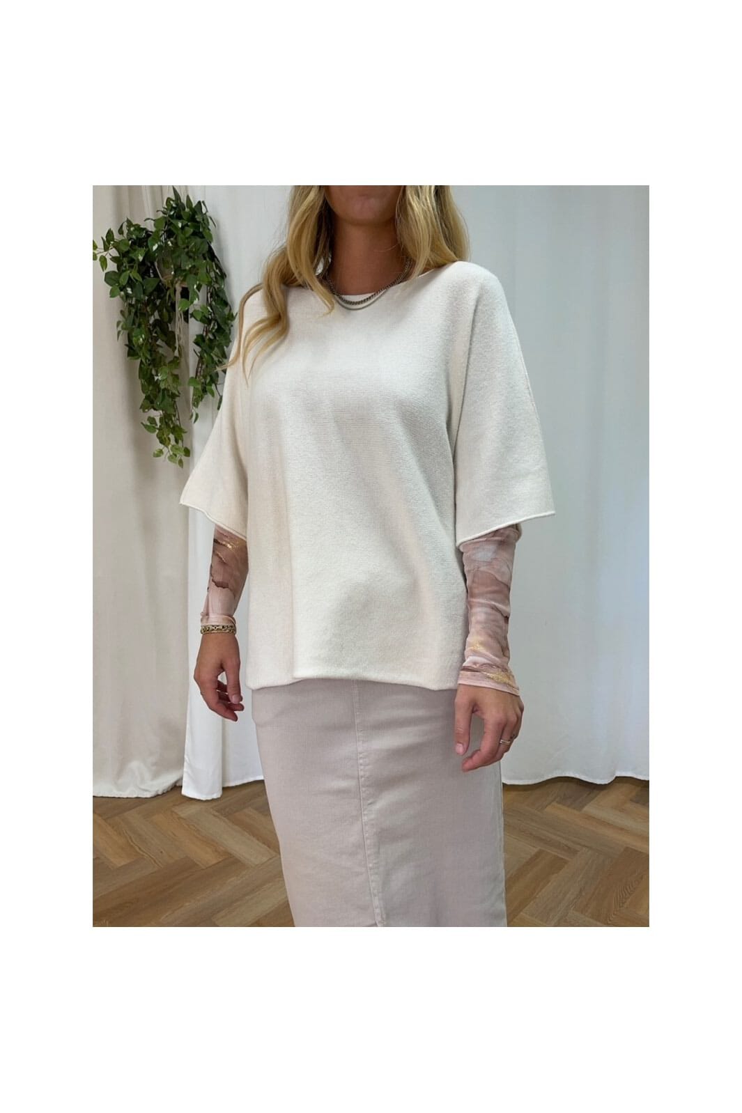Cremefarbener Strickpullover von Marta Du Chateau mit lockerer Passform. Der Pullover hat kurze Ärmel und einen Rundhalsausschnitt, der ihn leicht für den Alltag und zum Entspannen stylen lässt.