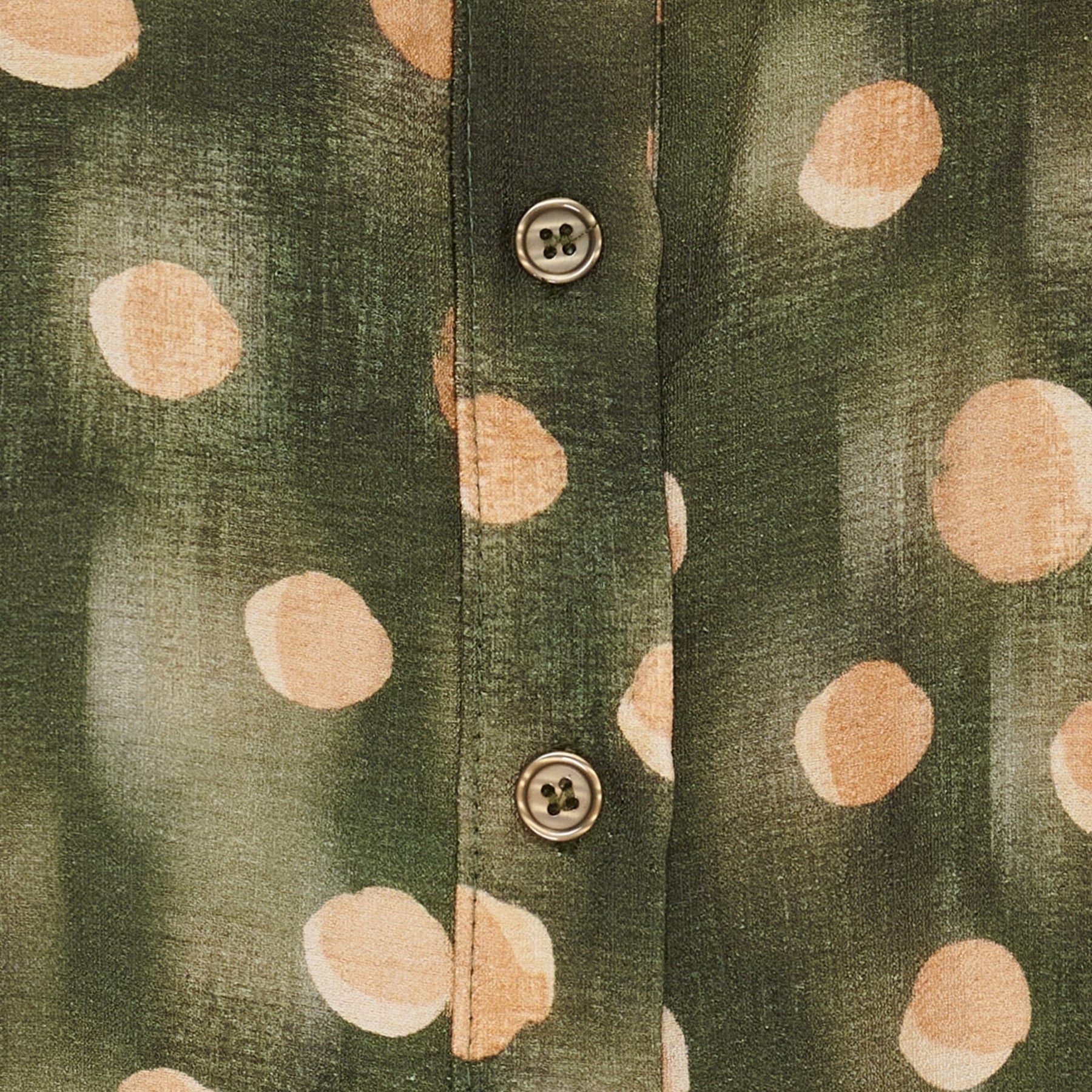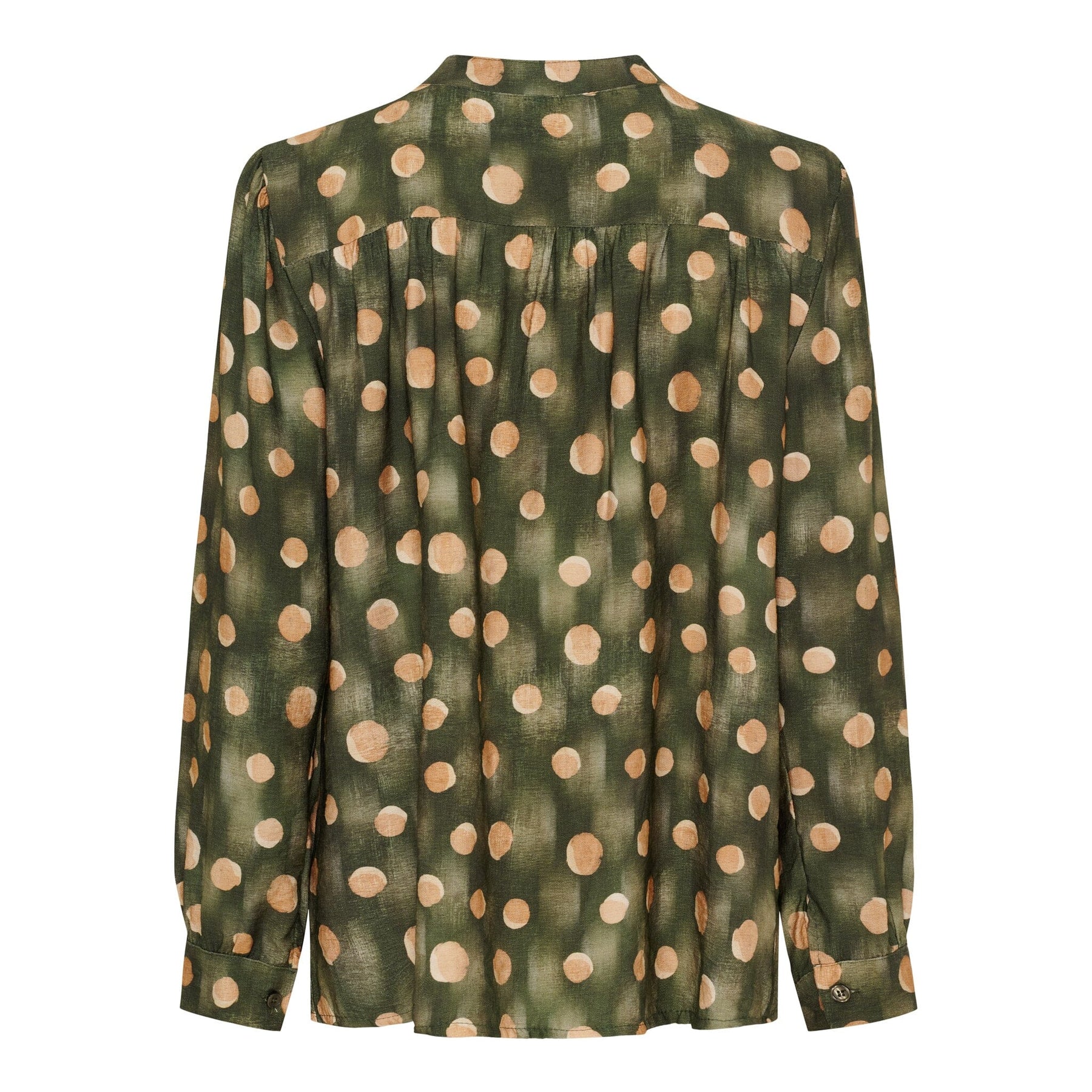 Hemd von Marta Du Chateau in Militärgrün mit hellen Polka-Dots. Das lockere Modell hat einen Hemdkragen, Knöpfe die ganze Länge und lange Ärmel.