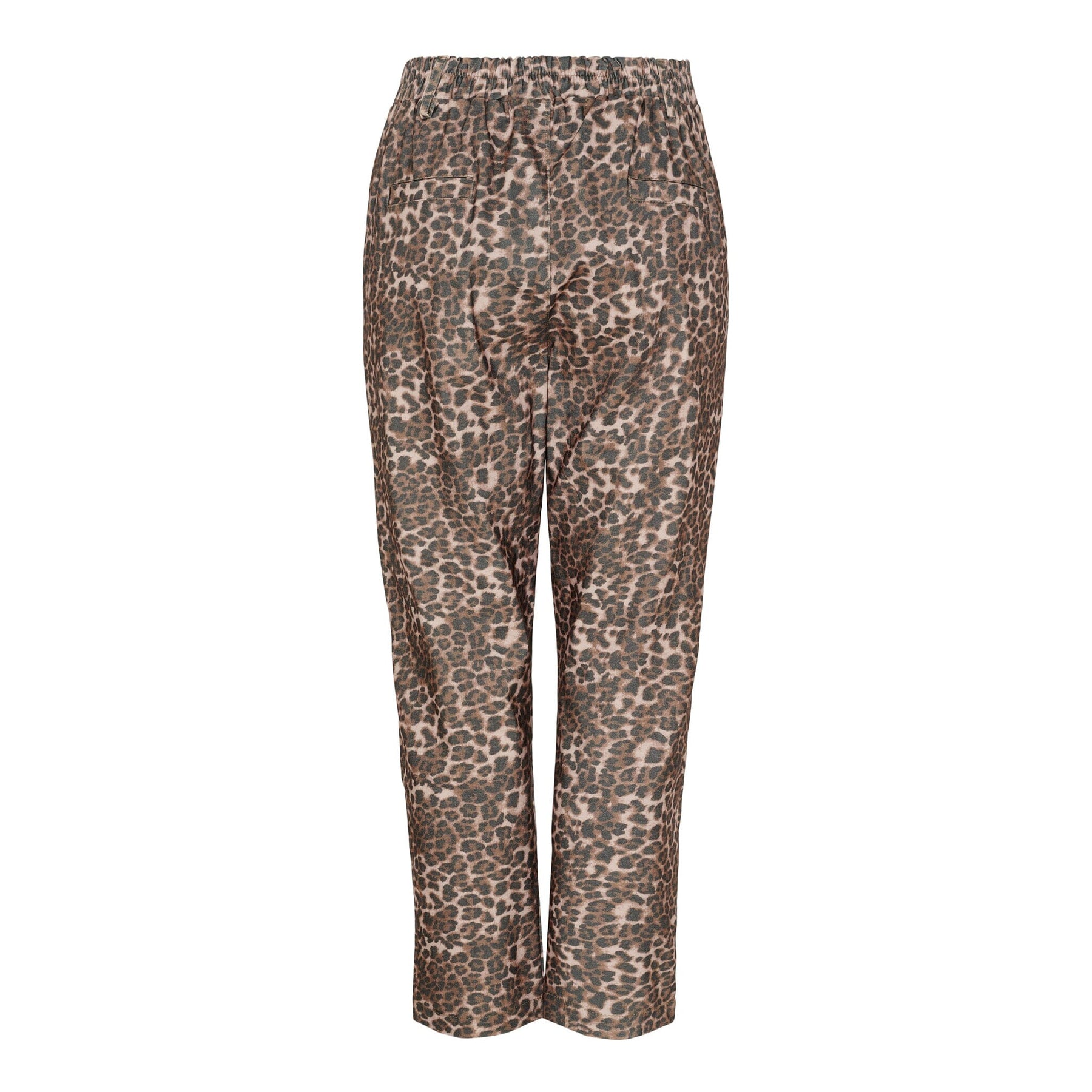 Hosen von Marta Du Chateau mit braunem Leopardenmuster. Die langen Hosen haben Taschen auf der Vorderseite und eine Mischung aus Reißverschluss und Gummizug in der Taille.