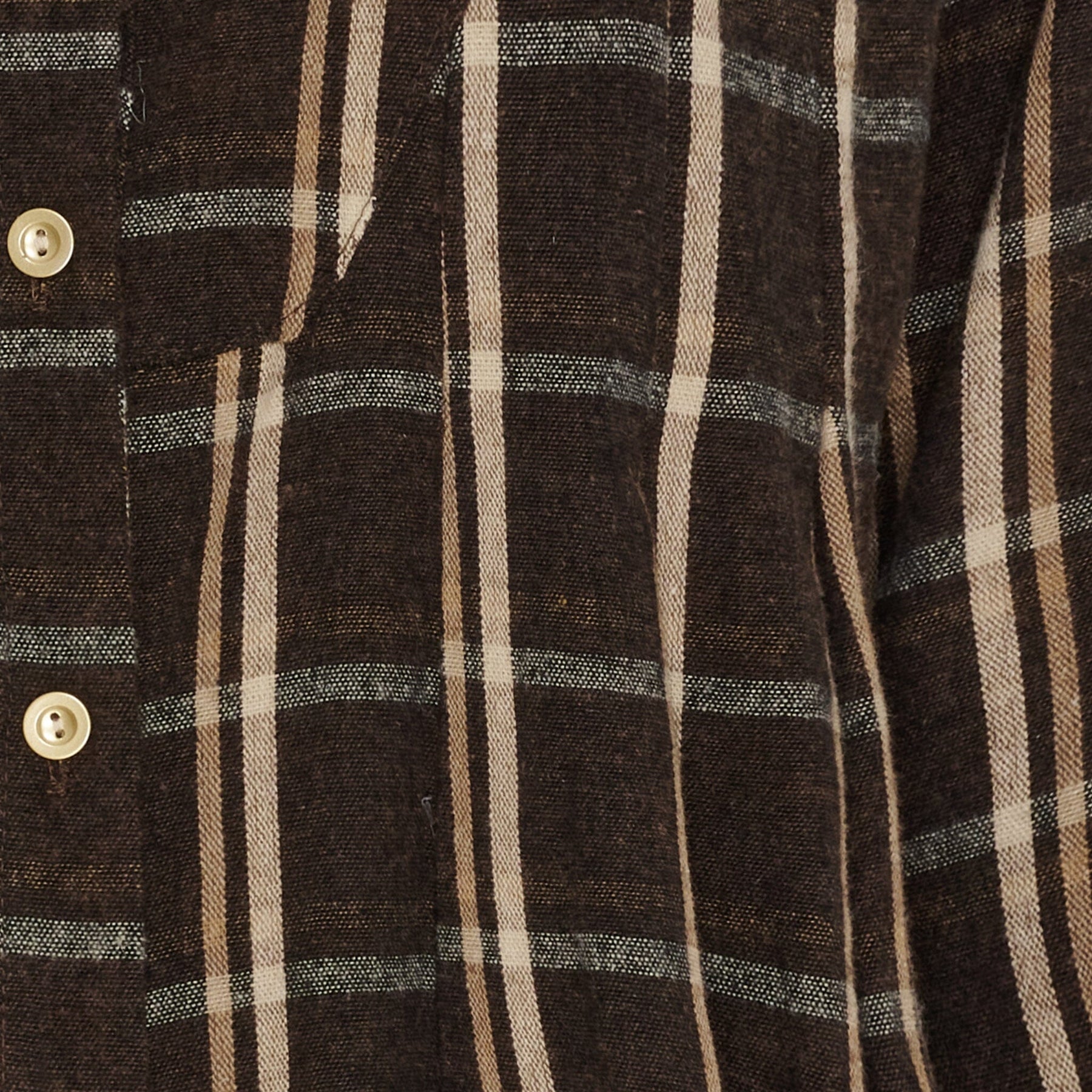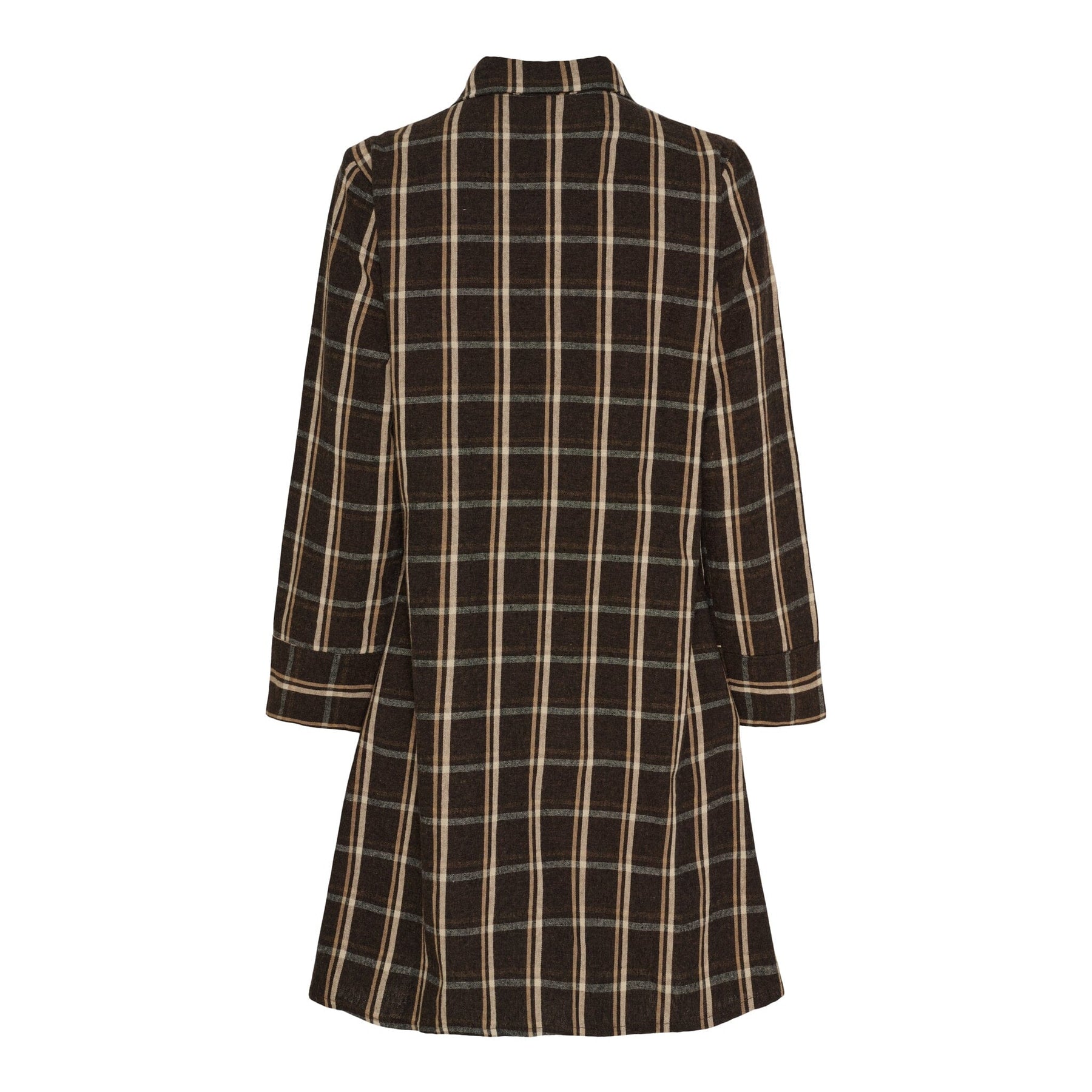 Karierte Kleid von Marta Du Chateau in braunen Nuancen. Das Kleid hat Knielänge, Hemdkragen und eine lockere Passform mit langen Ärmeln.