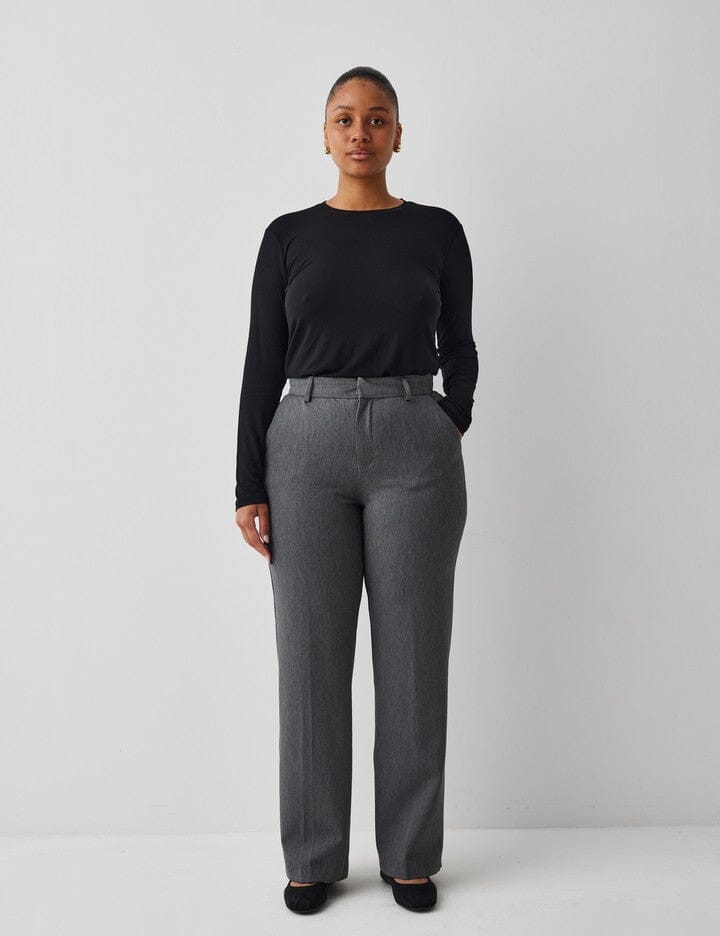Graue Hosen von MbyM aus meliertem Stoff. Die Hosen haben eine gerade Passform und Knöchellänge mit Vordertaschen. Der Stoff hat eine neutrale Melange-Struktur.
