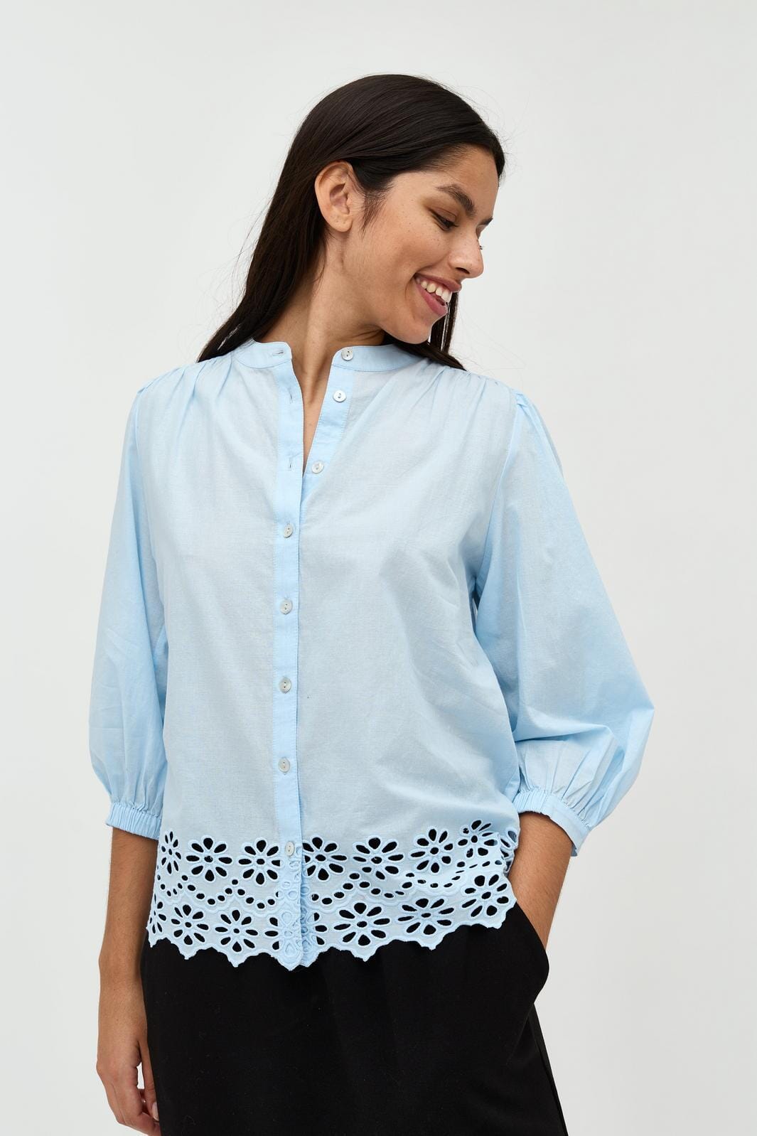 Schönes Hemd mit Stickerei und Knöpfen vorne.