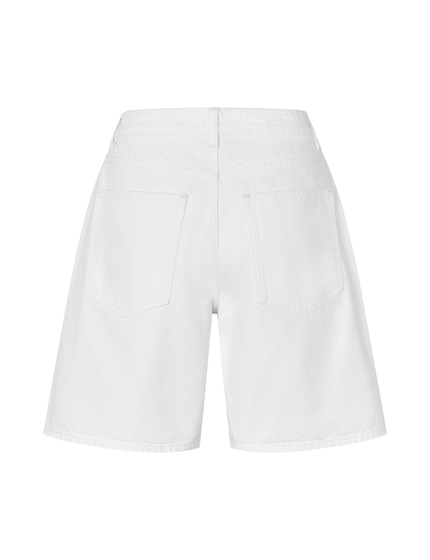 Weiße Shorts von MbyM mit hoher Taille und knielanger Länge. Die Shorts haben eine lockere Passform und werden mit Reißverschluss und Knöpfen geschlossen.