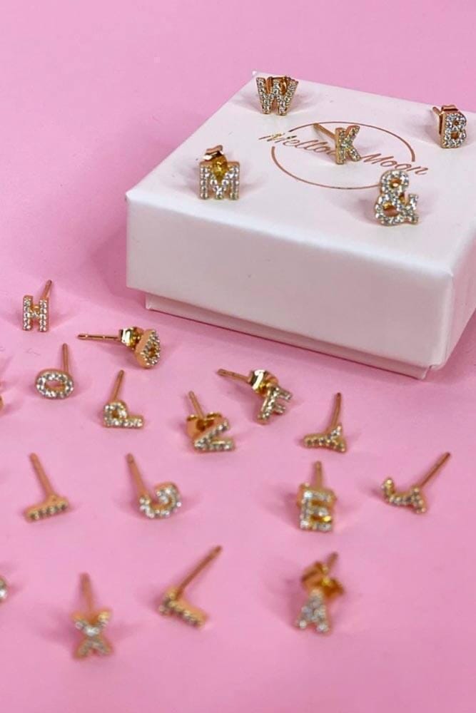 Mellow Moon Mellow Moon - Bogstav ørering Forgyldt med sten (1 stk)
