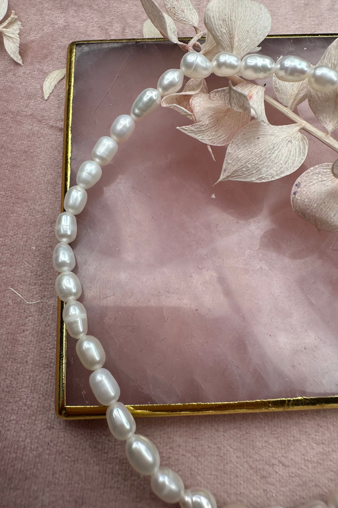 freshwater 3-4mm rice pearl anklet 23cm elastic