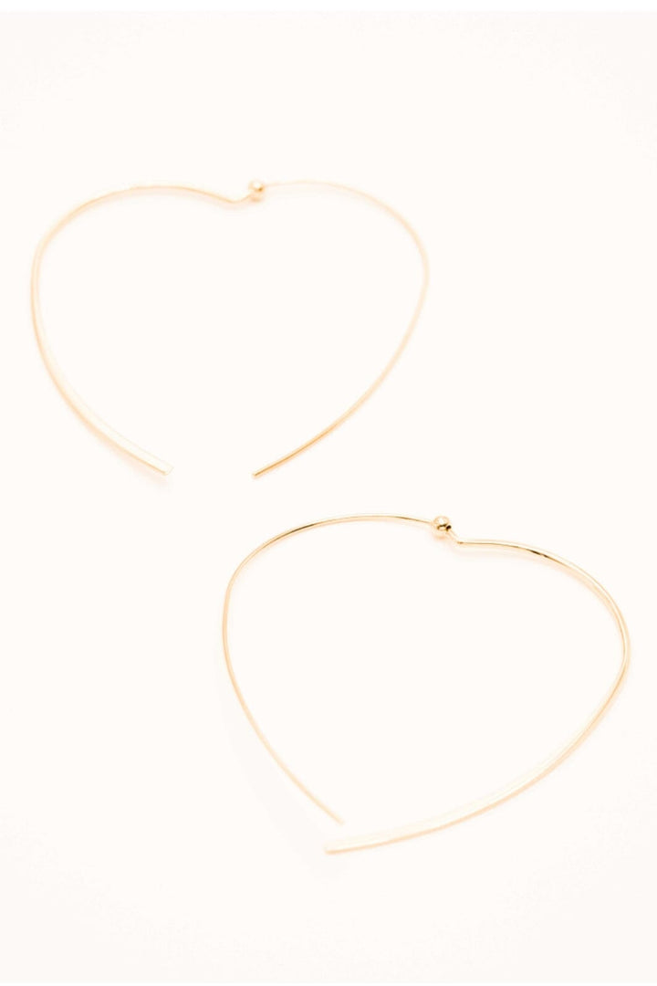 Vergoldete Hoop-Ohrringe von Mellow Moon mit einem herzförmigen Design. Die Ohrringe haben einen schwingenden Effekt und sind aus rostfreiem Stahl mit einer goldenen Oberfläche gefertigt.