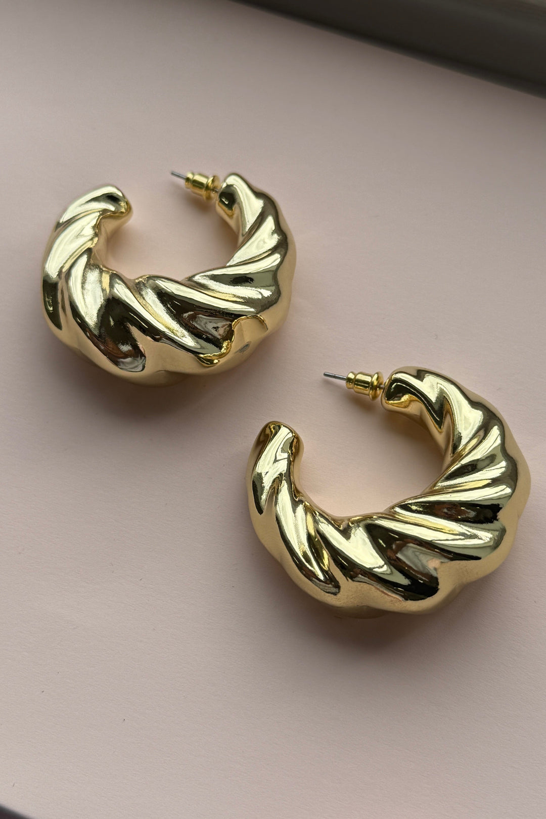 Vergoldete Ohrringe von Mellow Moon mit einem rosenförmigen Design. Der Ohrring besteht aus rostfreiem Stahl mit einer goldenen Oberfläche, die einen glänzenden und langlebigen Eindruck vermittelt.