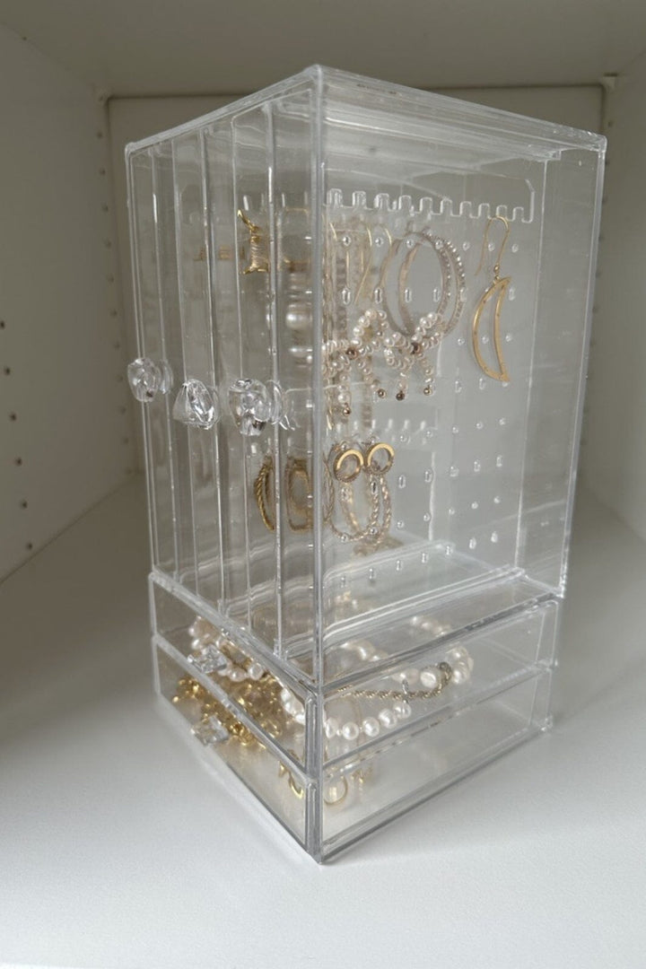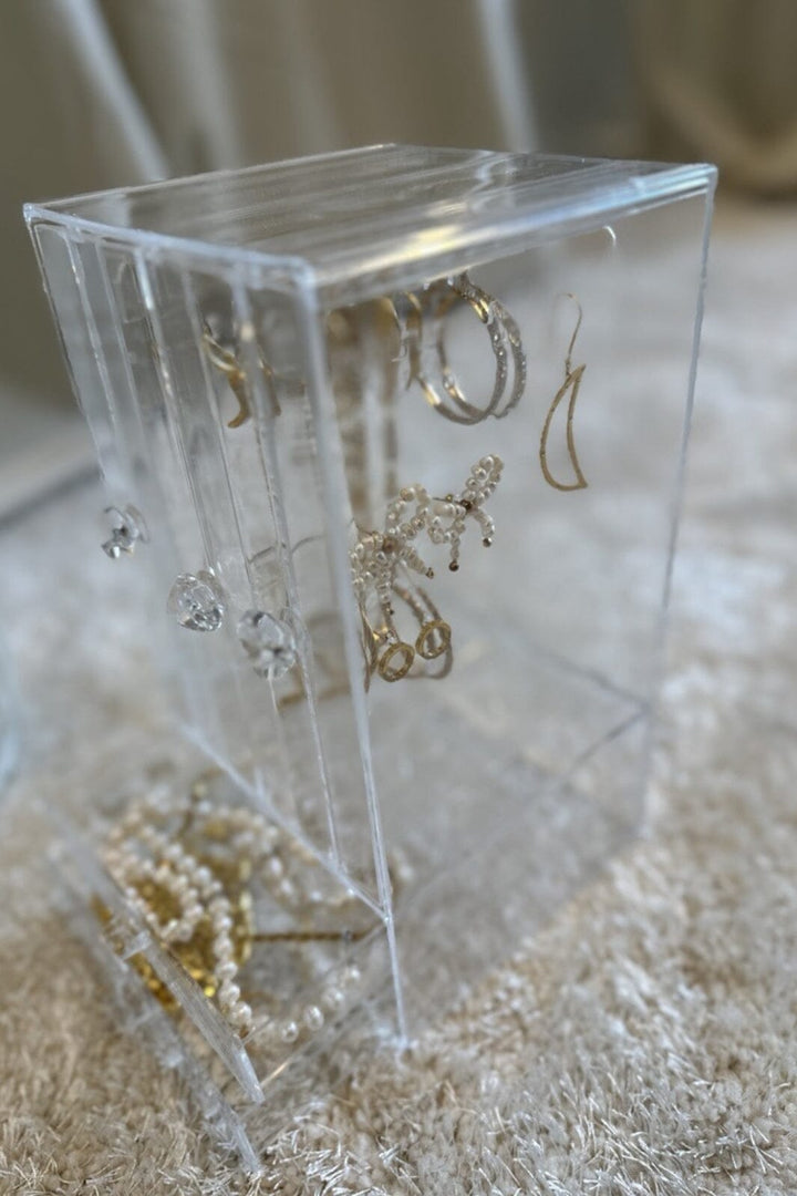 Schmuckkästchen von Mellow Moon aus transparentem Acryl. Die durchsichtige Konstruktion macht es einfach, seine Schmuckstücke sofort zu sehen und zu finden.