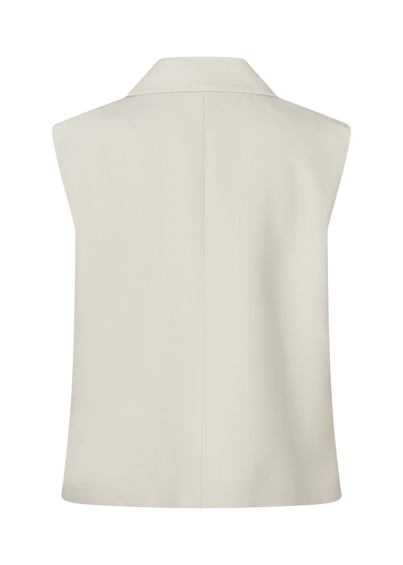Ärmlose Weste von Modström in einem Off-White-Ton. Die Weste hat einen klassischen Kragen und wird vorne mit Knöpfen geschlossen.