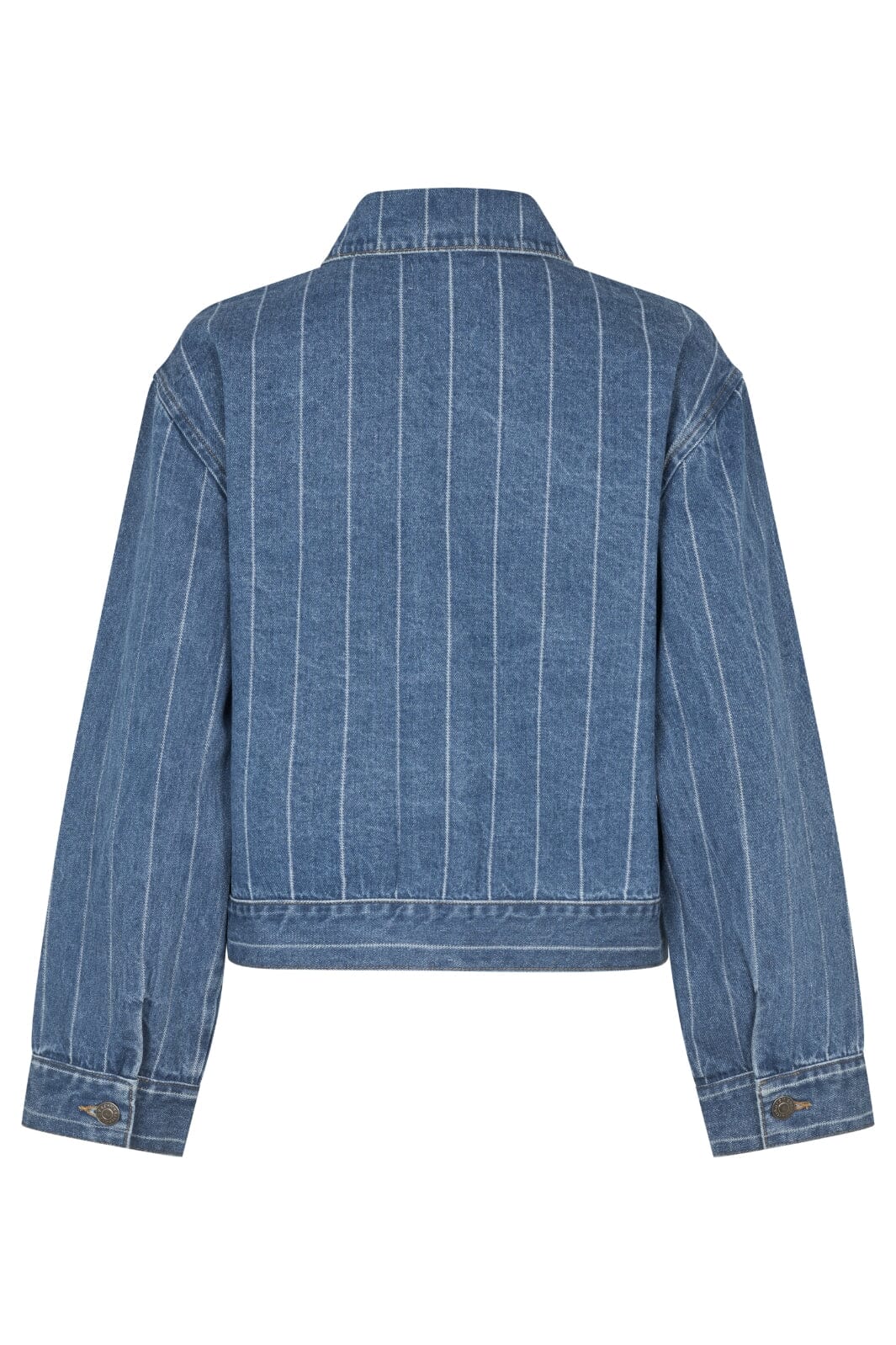 Denim-Hemdjacke von Modström mit Jacquardstreifen. Sie hat eine lockere Passform mit breiten Ärmeln, Hemdkragen und durchgehender Knopfleiste.