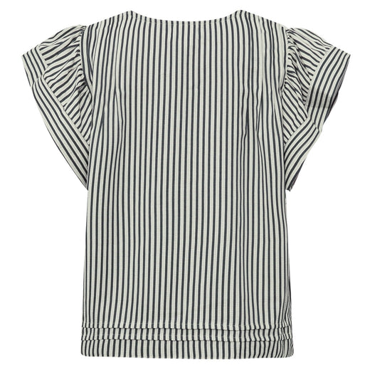 Denimrock von Modström mit Jacquard-Streifen und schräger Verschluss. Sie hat einen Knopf an der Taille und einen asymmetrischen Schnitt, der dem Rock einen besonderen Ausdruck verleiht.
