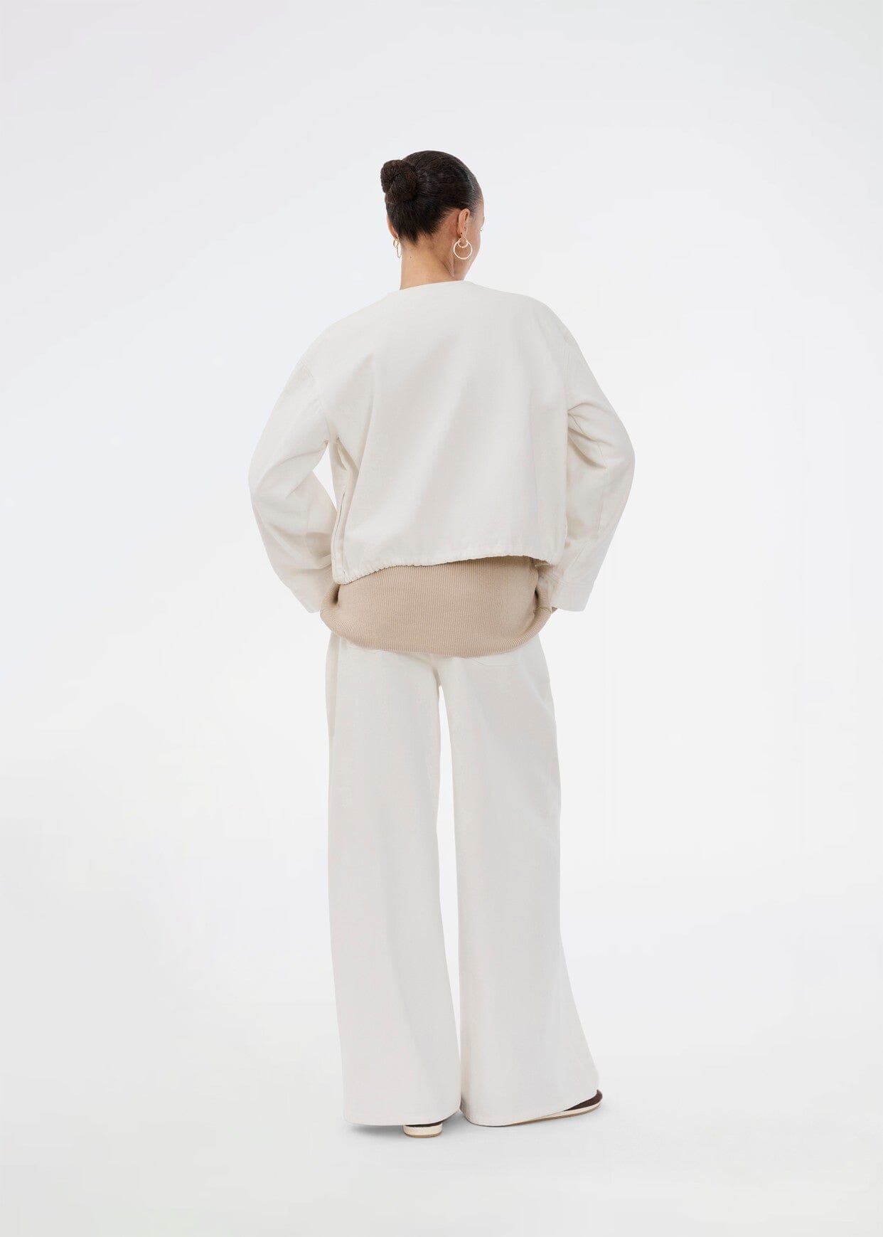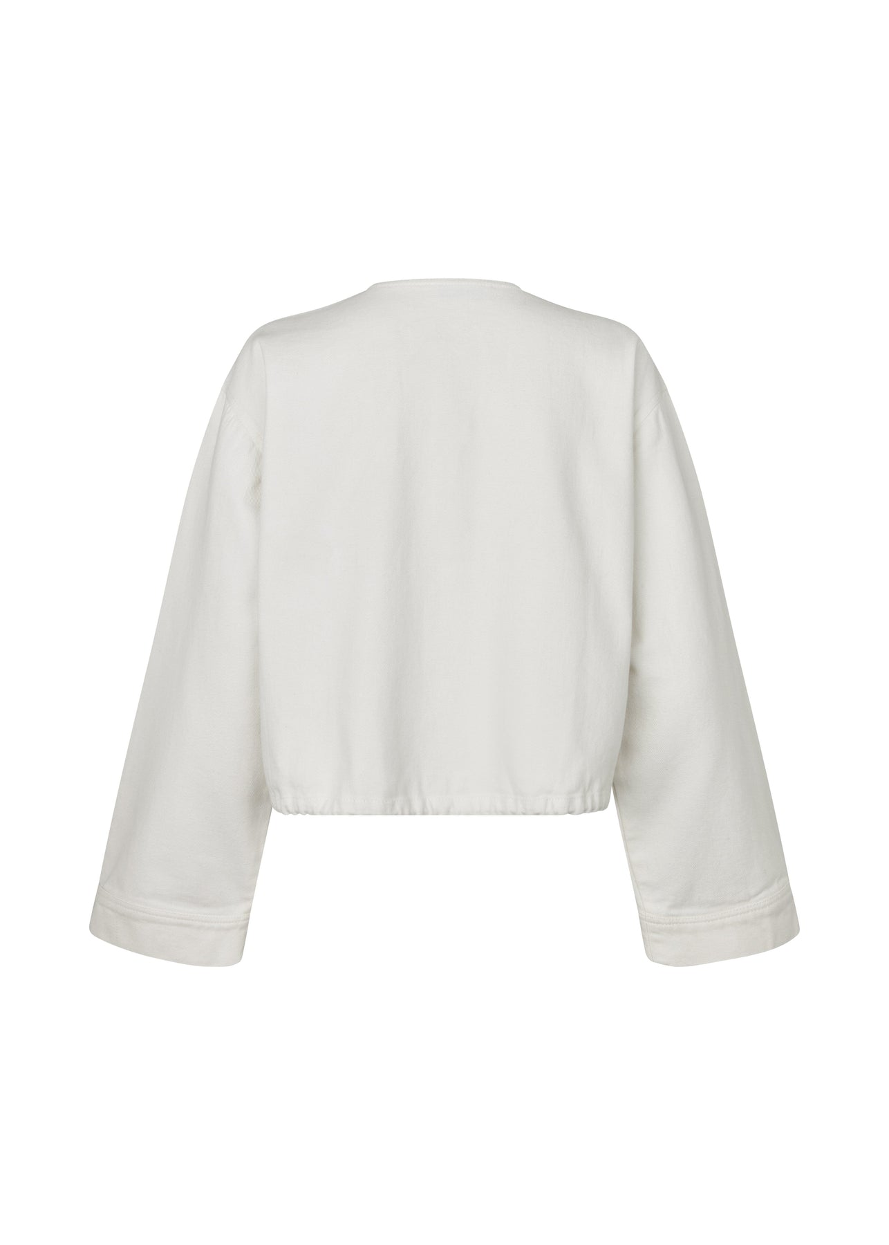 Kurze Jacke von Modström in einem hellen Cremefarbton. Die Jacke hat eine Oversize-Passform und besteht aus 100 % Baumwolle.