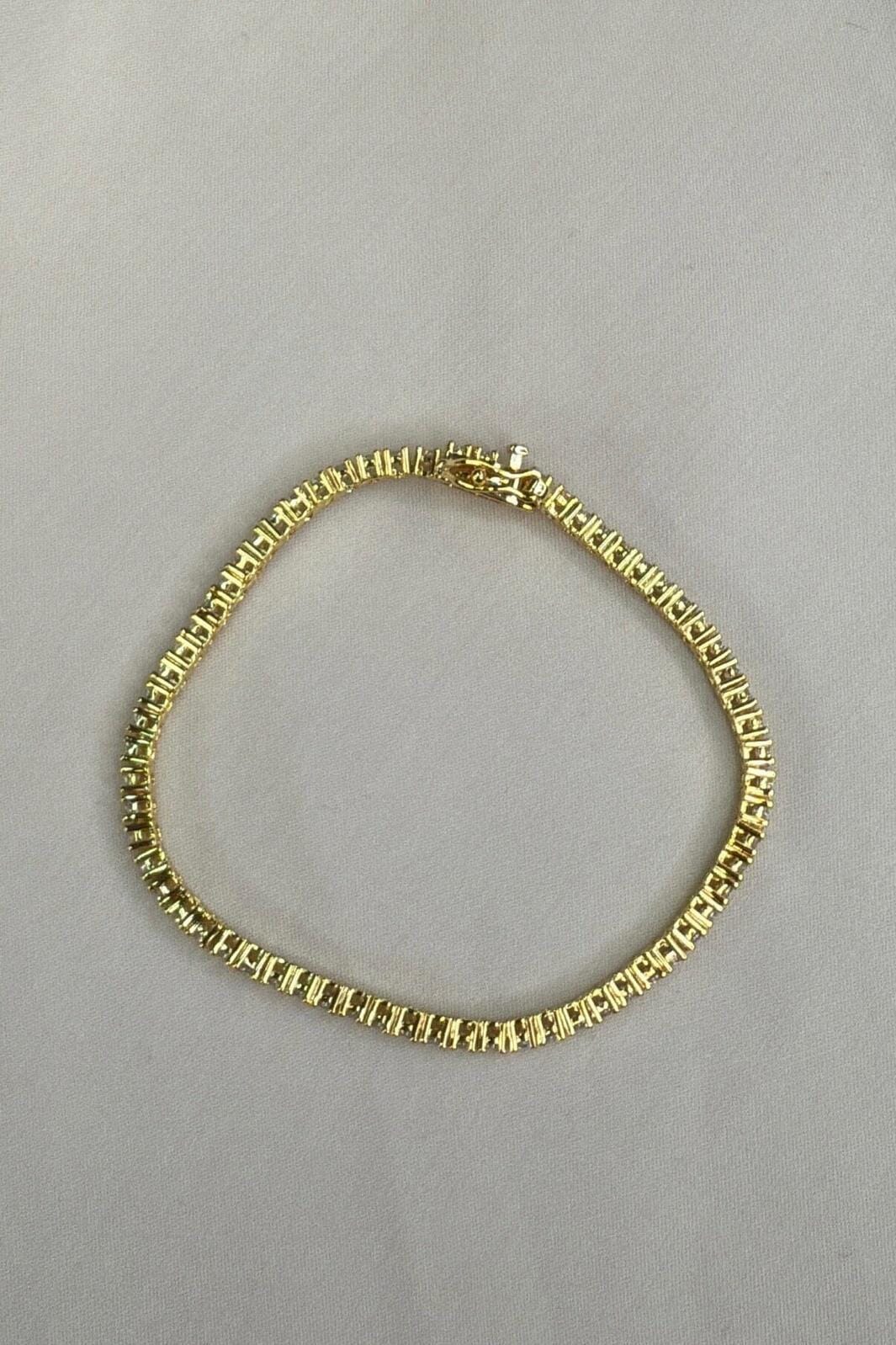 Vergoldetes Armband von Molly&My Jewellery mit klaren Steinen entlang der gesamten Länge. Das Armband hat eine goldfarbene Oberfläche und einen Verschlussmechanismus.