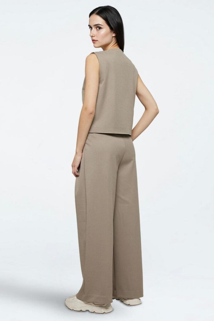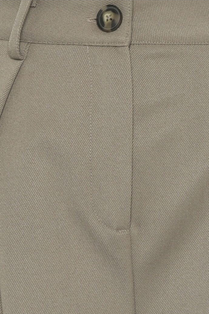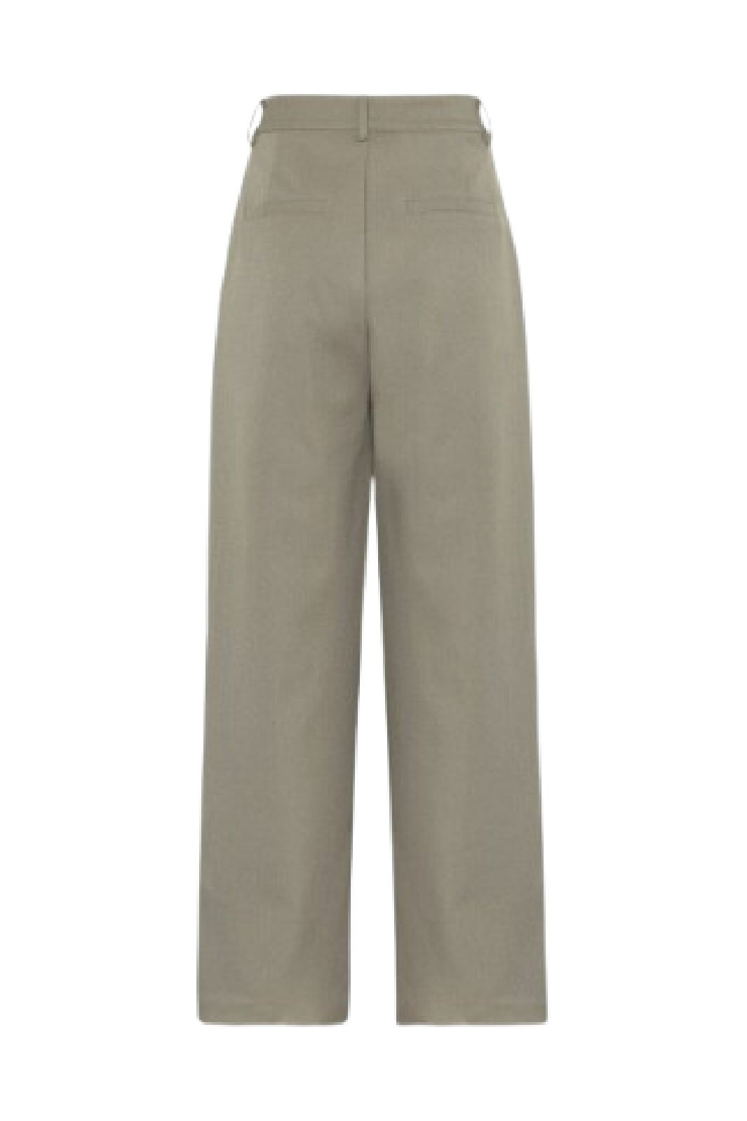 Hosen von Moves by Minimum in der Farbe Fossil. Sie haben eine hohe Taille und weite Beine mit lockerem Sitz. Die Hosen sind lang und haben zwei Gesäßtaschen sowie einen Knopf- und Reißverschluss.