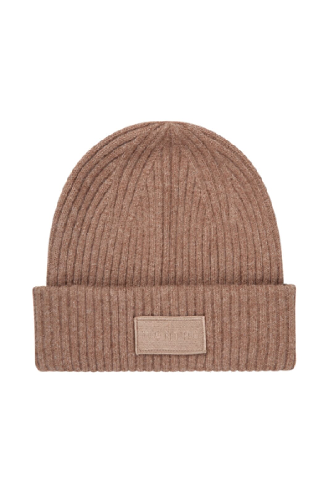 Ribstrikket hue med logo mærke foran. Fremstillet i en genanvendt polyester blanding. Fås i farven grå, beige, ice blue, charcoal eller mocca.