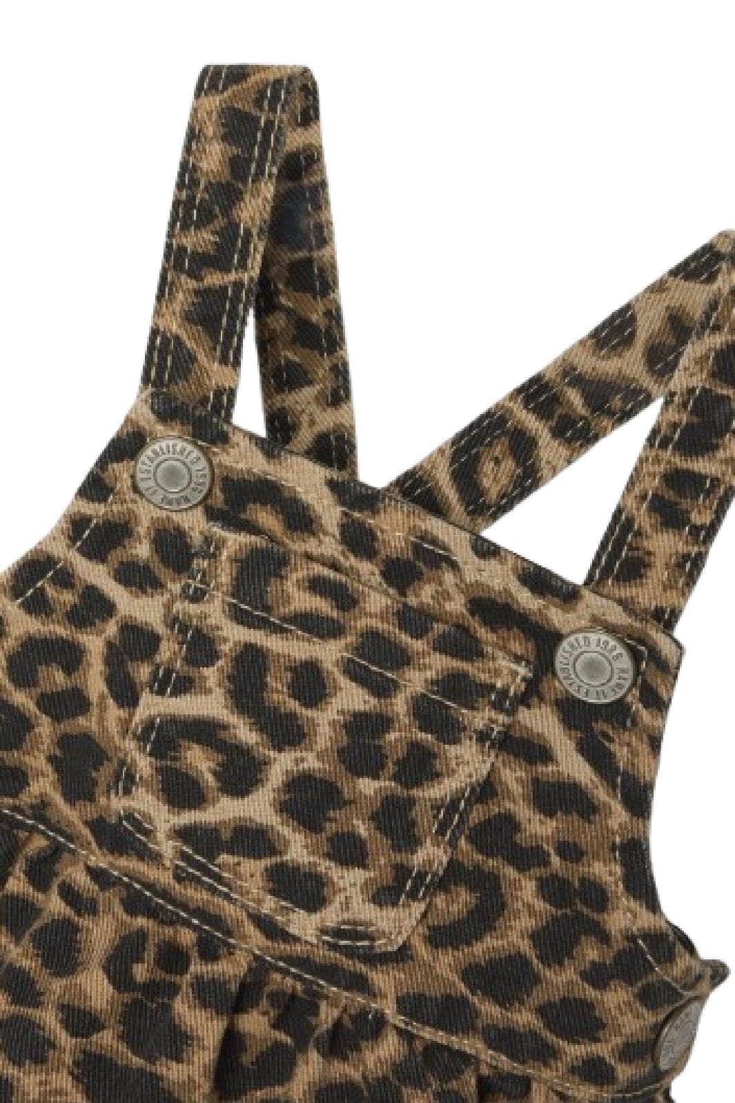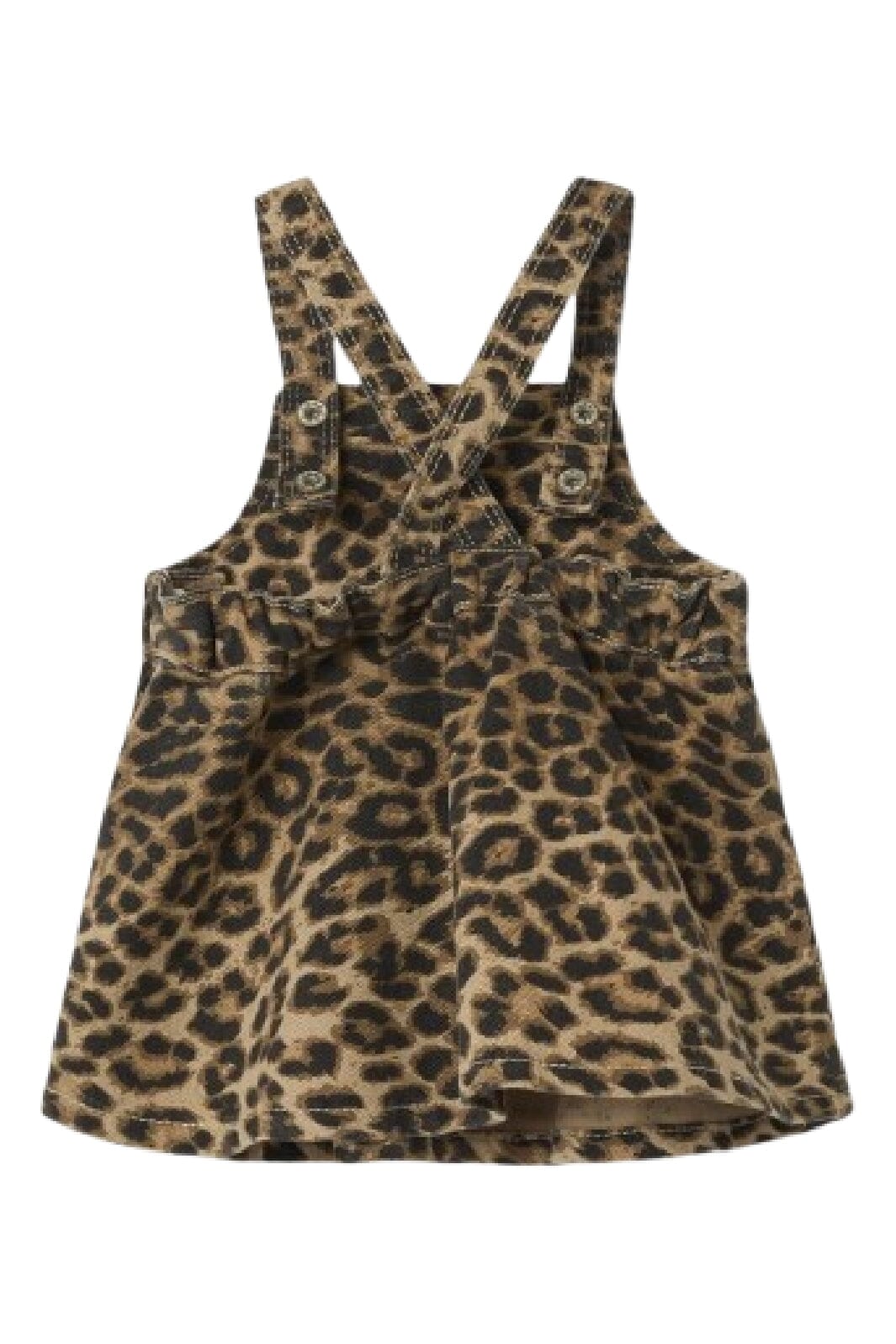 Schicker Rock von Name It aus Twill mit Leopardenmuster. Der Rock hat Träger und eine Brusttasche sowie eine verstellbare Taille mit Falten und Knöpfen.
