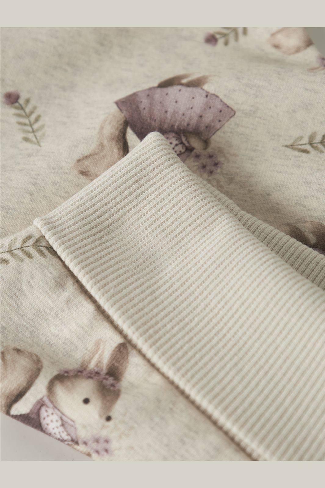 Beige Jogginghose von Name It mit hoher Taille und Knöchellänge. Die Hose hat ein süßes Muster mit Eichhörnchen in Kleidern und ist mit einem Rippbund an Taille und Beinen ausgestattet.