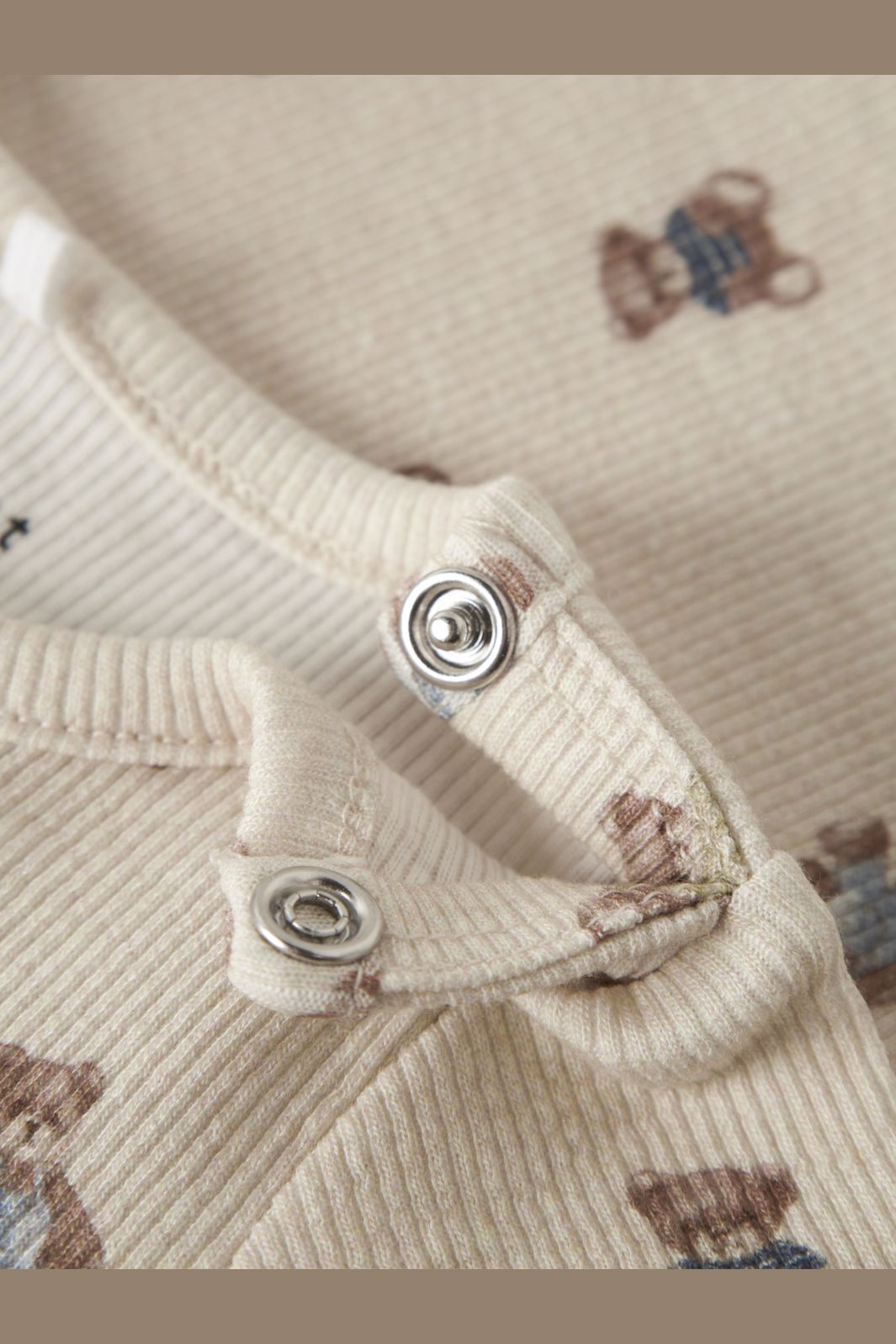 Body von Name It in einem beigefarbenen Melangeton. Der Body besteht aus einem Rippstrickmaterial mit einem Bärenprint auf der gesamten Oberfläche.
