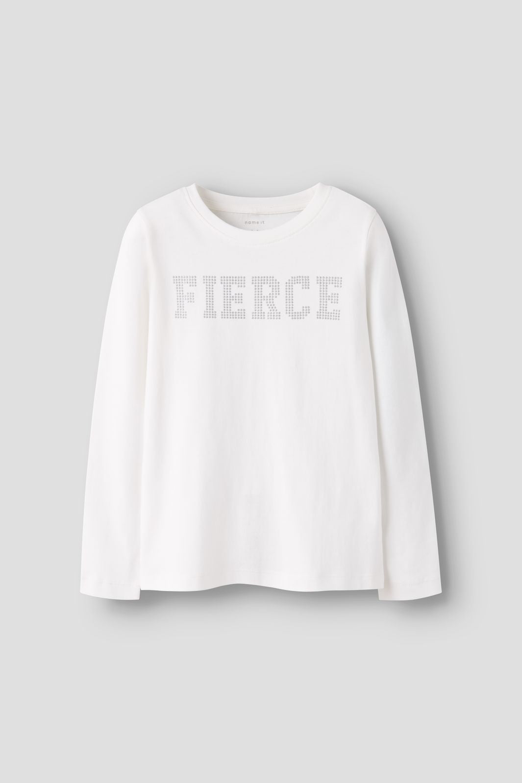 Langärmliges Top von Name It in einem weißen Farbton. Das Top besteht aus 100 % Bio-Baumwolle und hat einen Glitzerprint auf der Vorderseite.