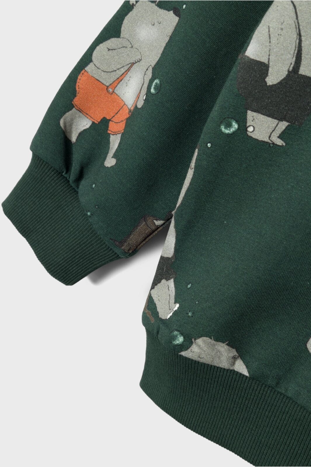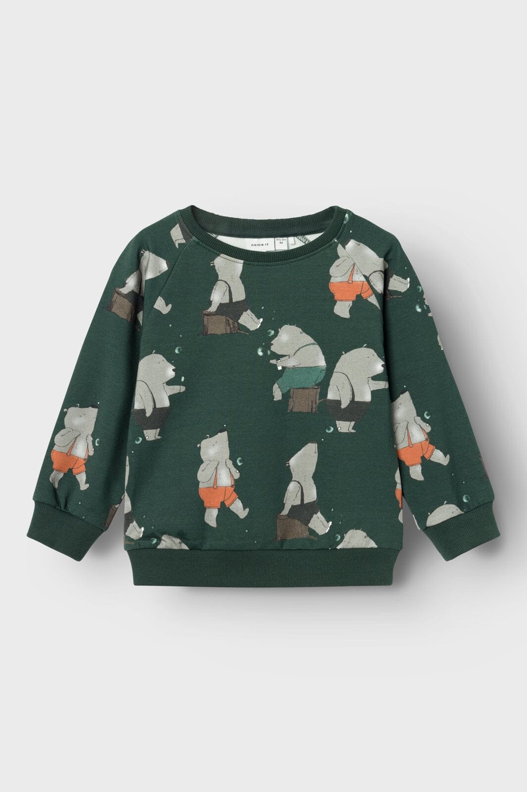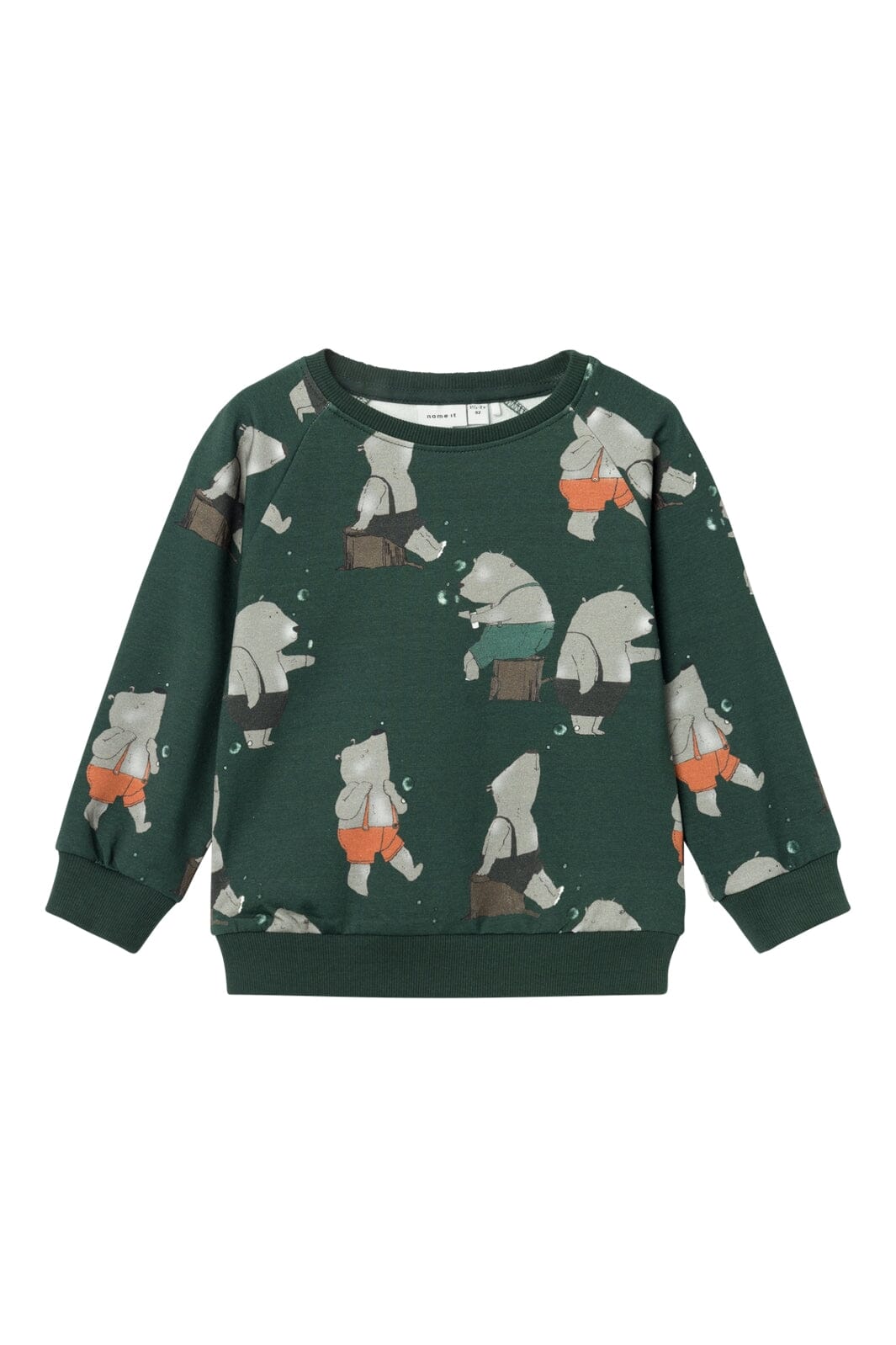 Grüne Sweatshirt mit Druck von spielerischen Bären. Der runde Halsausschnitt und die langen Raglanärmel sorgen für eine gute Passform, während die Rippbündchen die Form an den Ärmeln und am Saum halten.