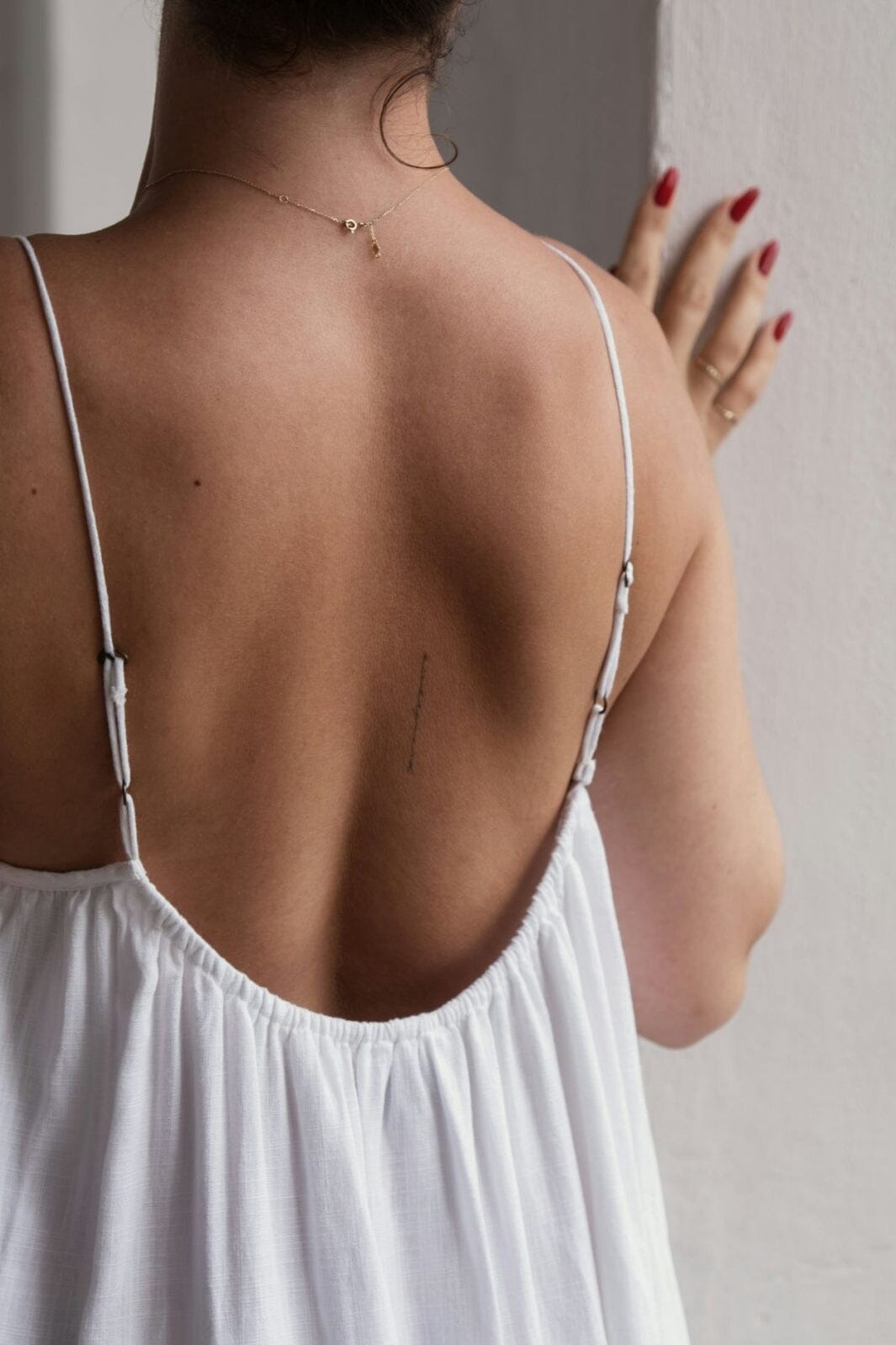 Weißes Kleid von Neo Noir mit dünnen Trägern und lockerer Passform. Das Kleid hat einen elastischen Rücken und Rüschendetails, die ihm einen leichten und luftigen Ausdruck verleihen.