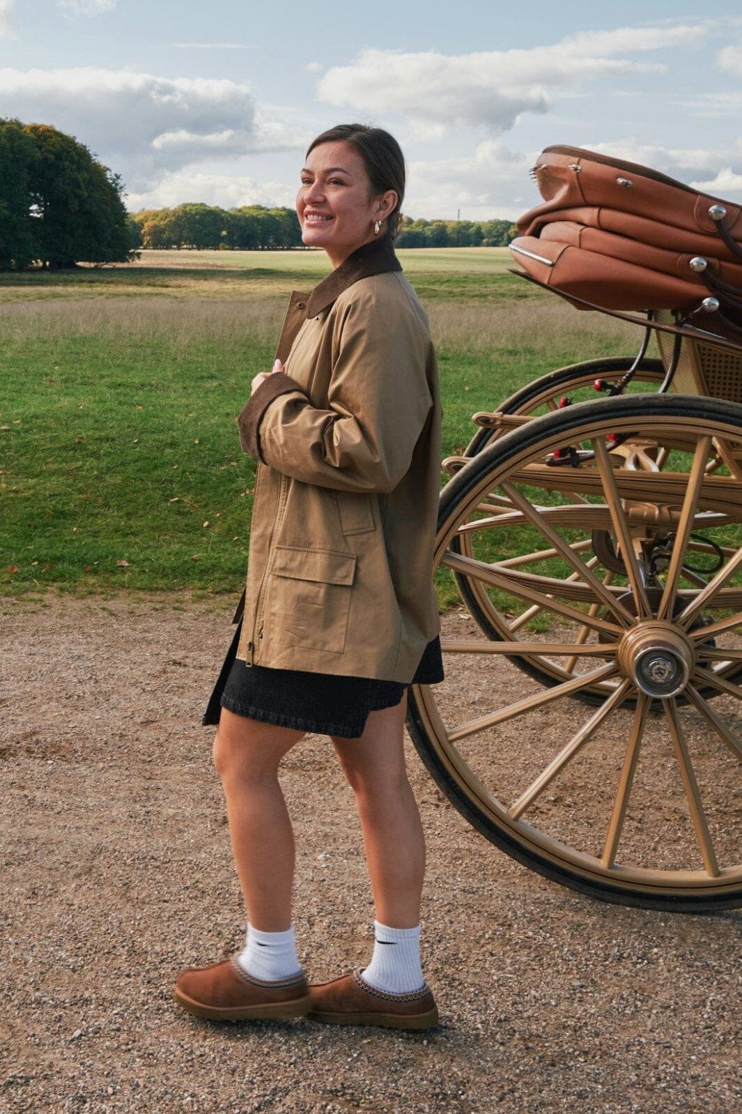 Braune Jacke von Neo Noir mit Cordkragen und 3/4-Ärmeln. Die Jacke hat eine lässige Passform und praktische Taschen auf der Vorderseite. Der Reißverschluss und die Druckknöpfe machen das Schließen einfach.