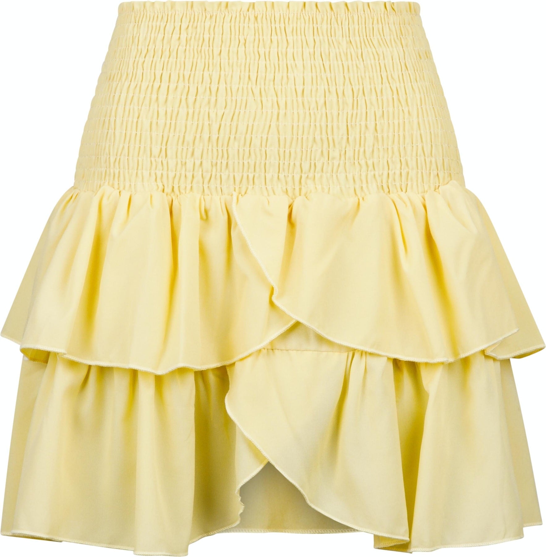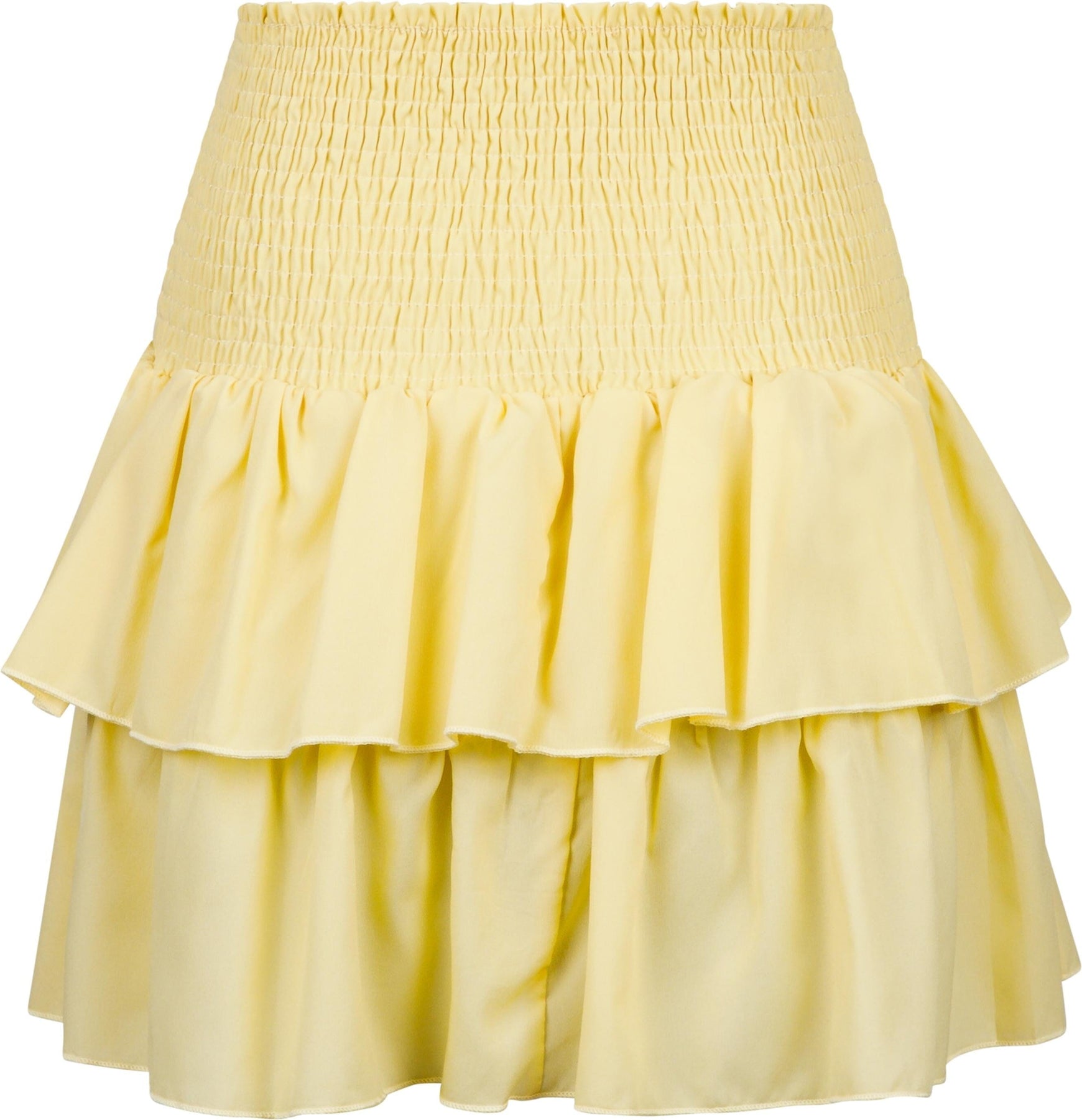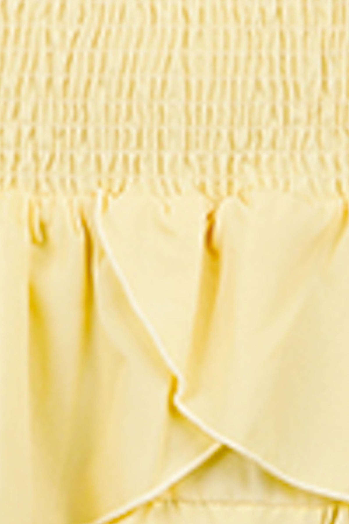 Gelber Rock von Neo Noir mit zweilagigen Rüschen und Smock-Taille. Der Rock besteht aus recyceltem Polyester mit hoher Taille und elastischem Verschluss.