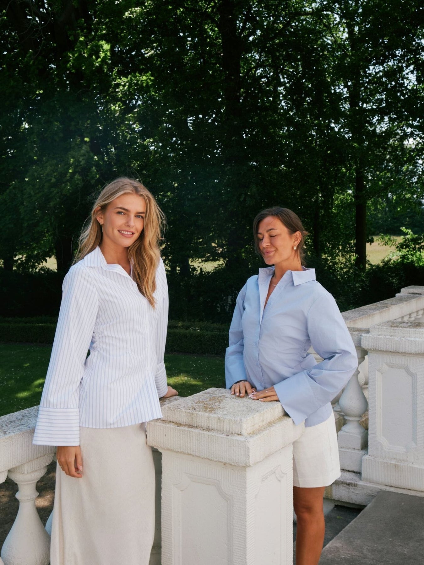 Gestreifte Bluse von Neo Noir in Weiß mit hellblauen Streifen. Die Bluse hat einen klassischen Kragen, lange Ärmel mit breiten Manschetten und eine schmale Passform.