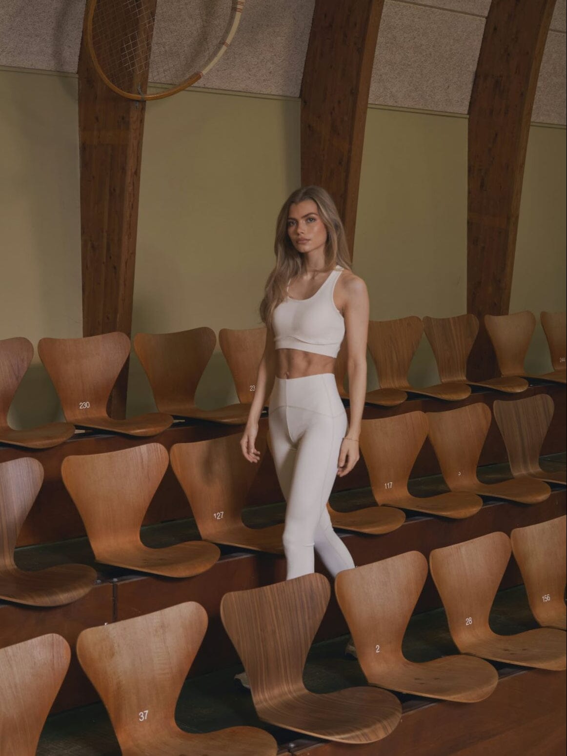 Ein offwhite Top von Neo Noir in einer elastischen Qualität aus Nylon und Elasthan. Das Top hat eine Skinny-Passform und ein Racerback-Design.