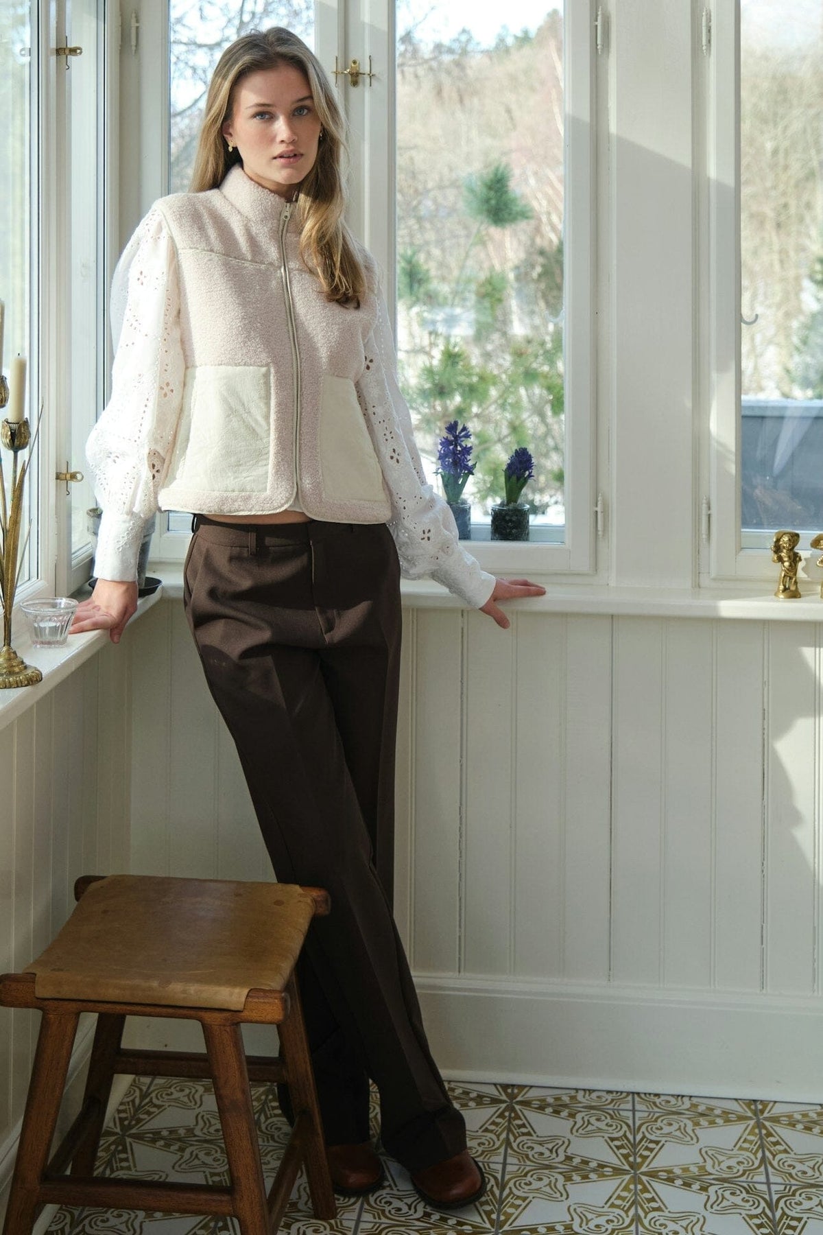 Ärmlose Weste von Neo Noir aus weicher Teddy-Qualität in hellem Elfenbein. Die Weste eignet sich für entspannte und gemütliche Umgebungen zu Hause und hat zwei große Fronttaschen.