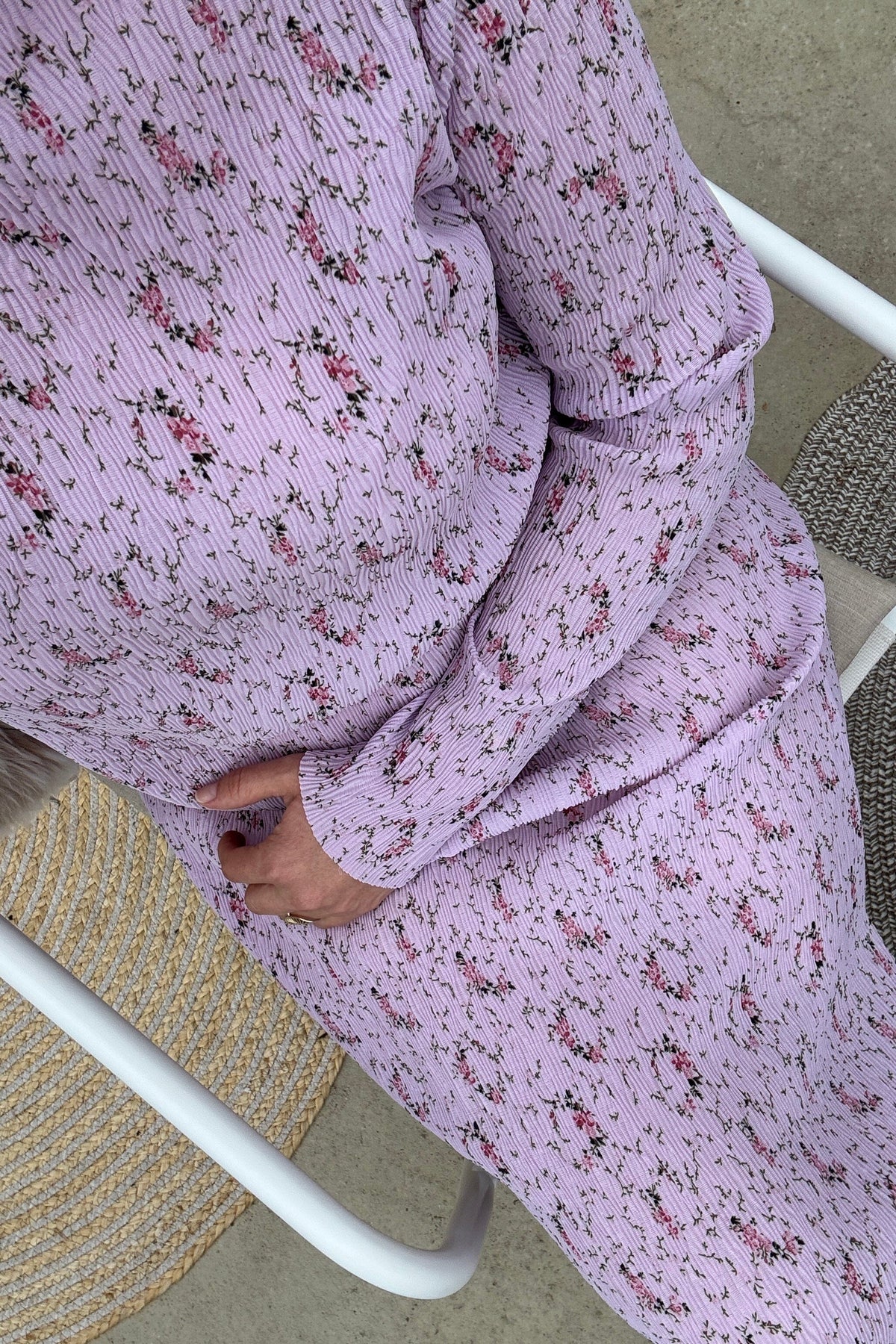 - Plissierter Stoff mit Blumenmuster
