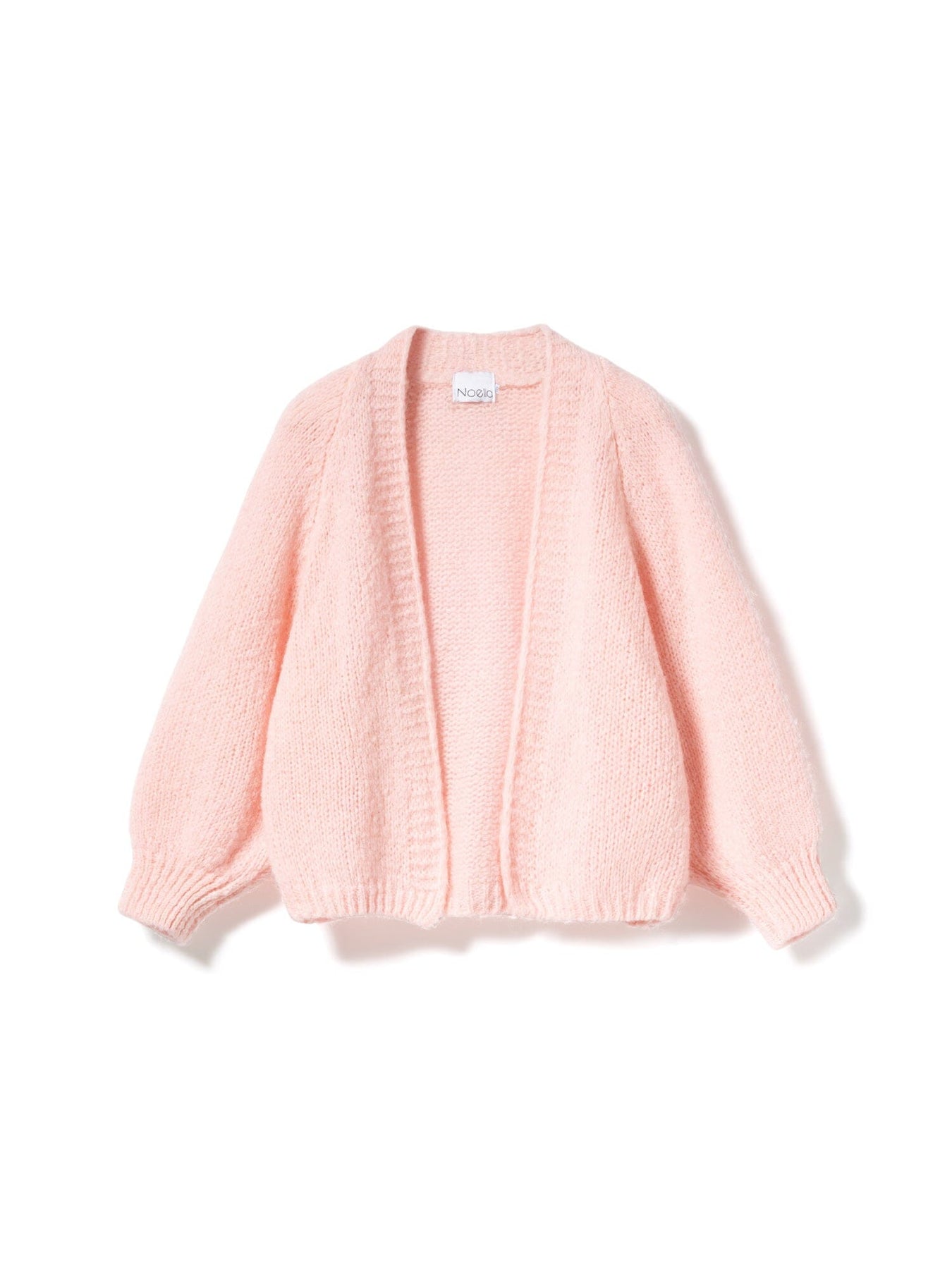 Rosa gestrickte Cardigan von Noella mit lockerer Passform. Sie hat puffige Ärmel und eine offene Vorderseite ohne Verschluss.