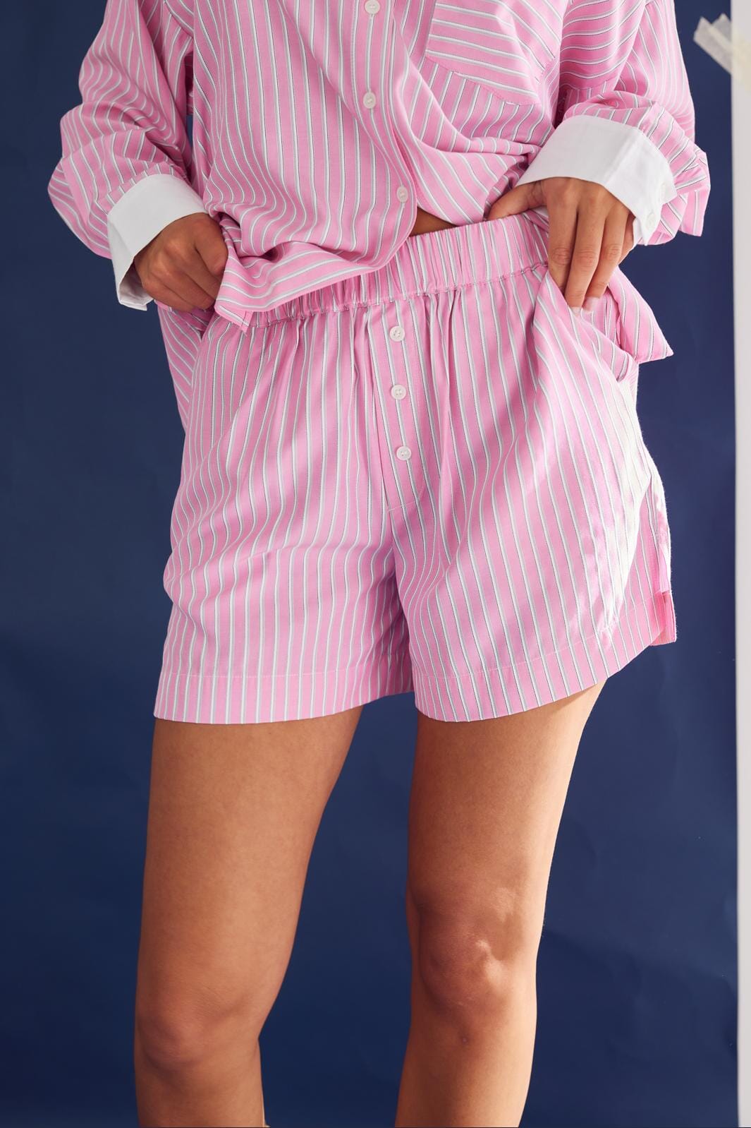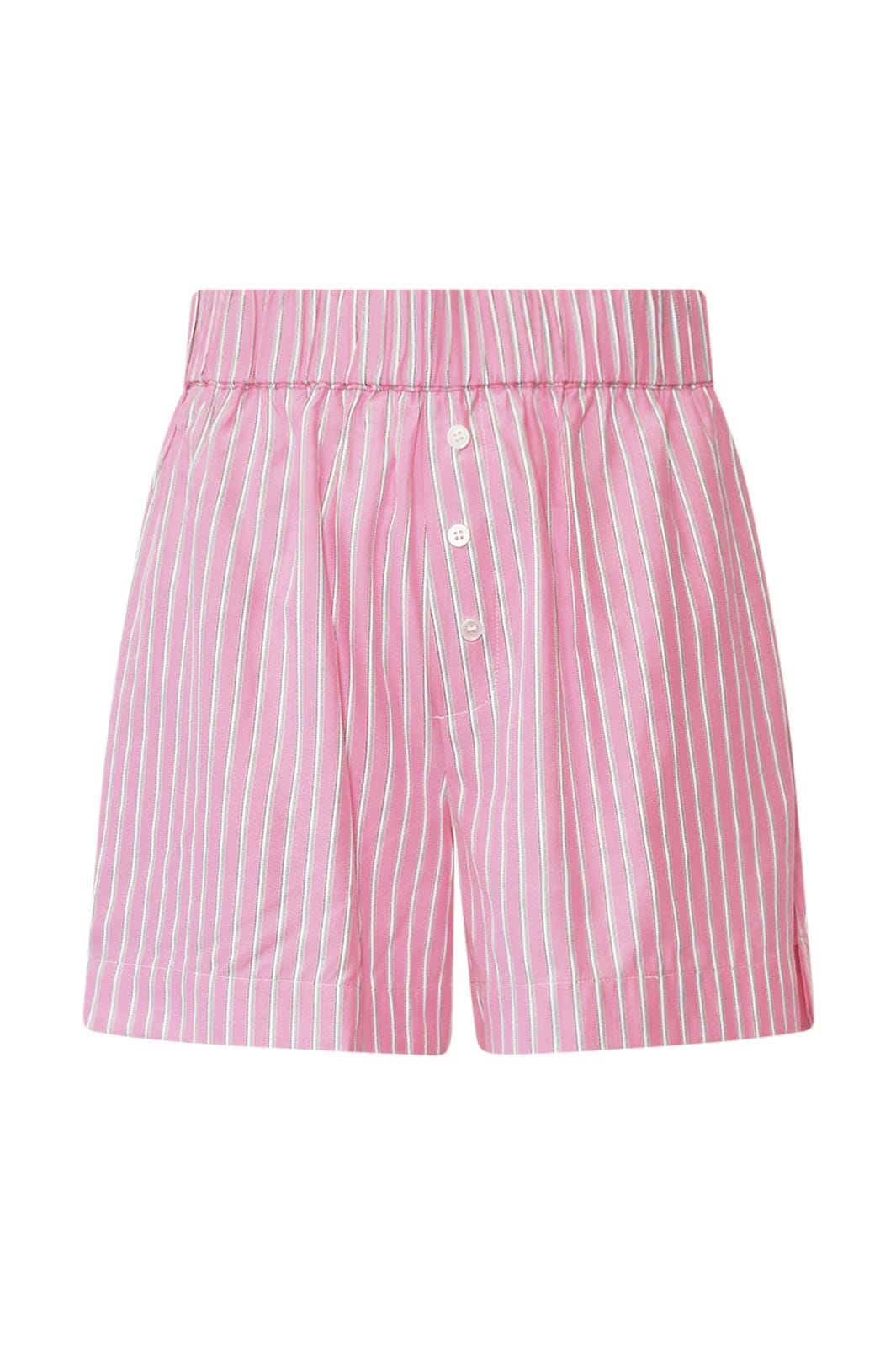 Gestreifte Shorts von Noella in Pink und Weiß. Die Shorts haben eine Oberschenkellänge und kombinieren einen elastischen Bund mit dekorativen Knöpfen vorne.