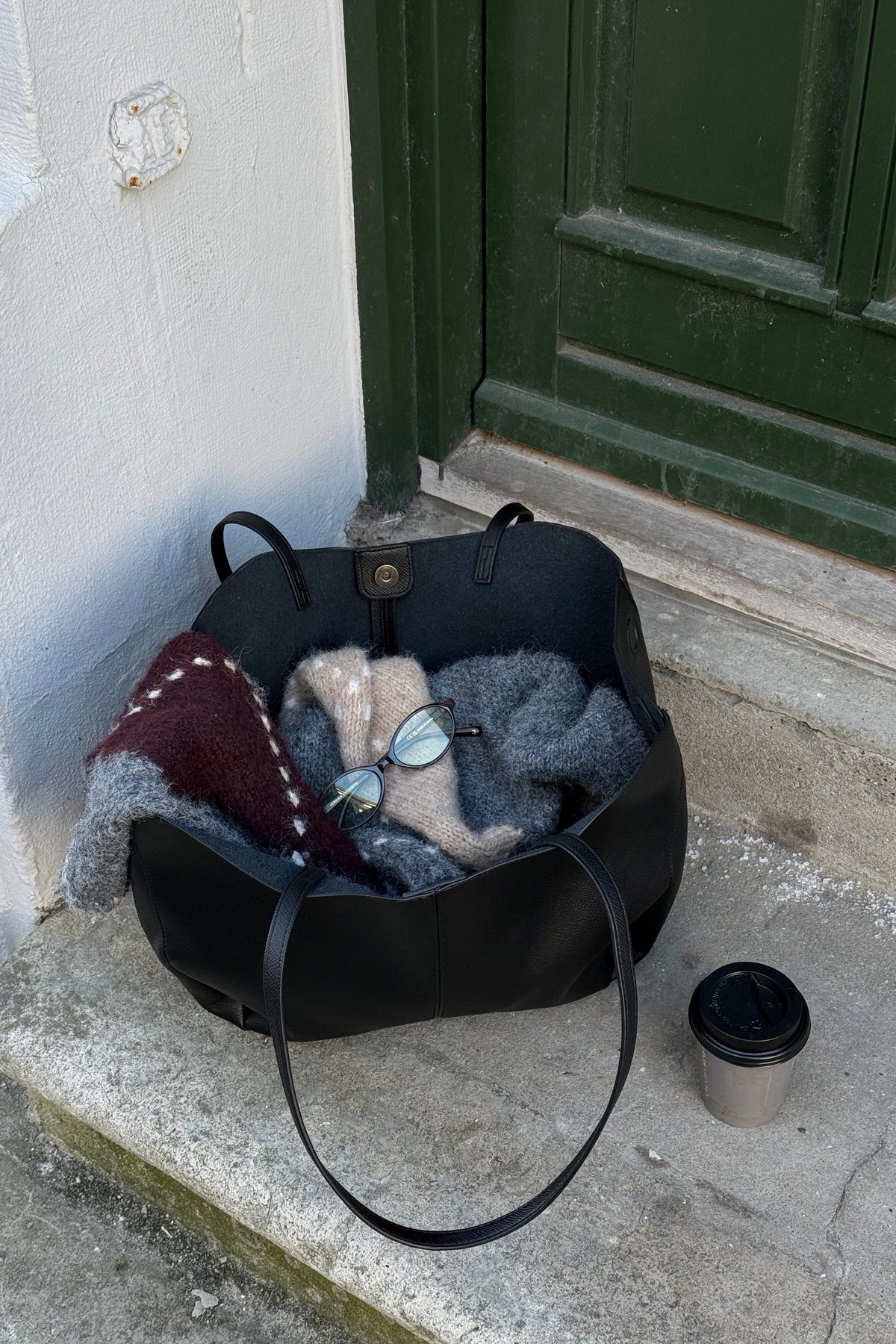 Schwarze Tasche von Noella, hergestellt aus Polyurethan mit einem weichen Finish. Die Tasche hat ein geräumiges Inneres und lange, schmale Henkel.