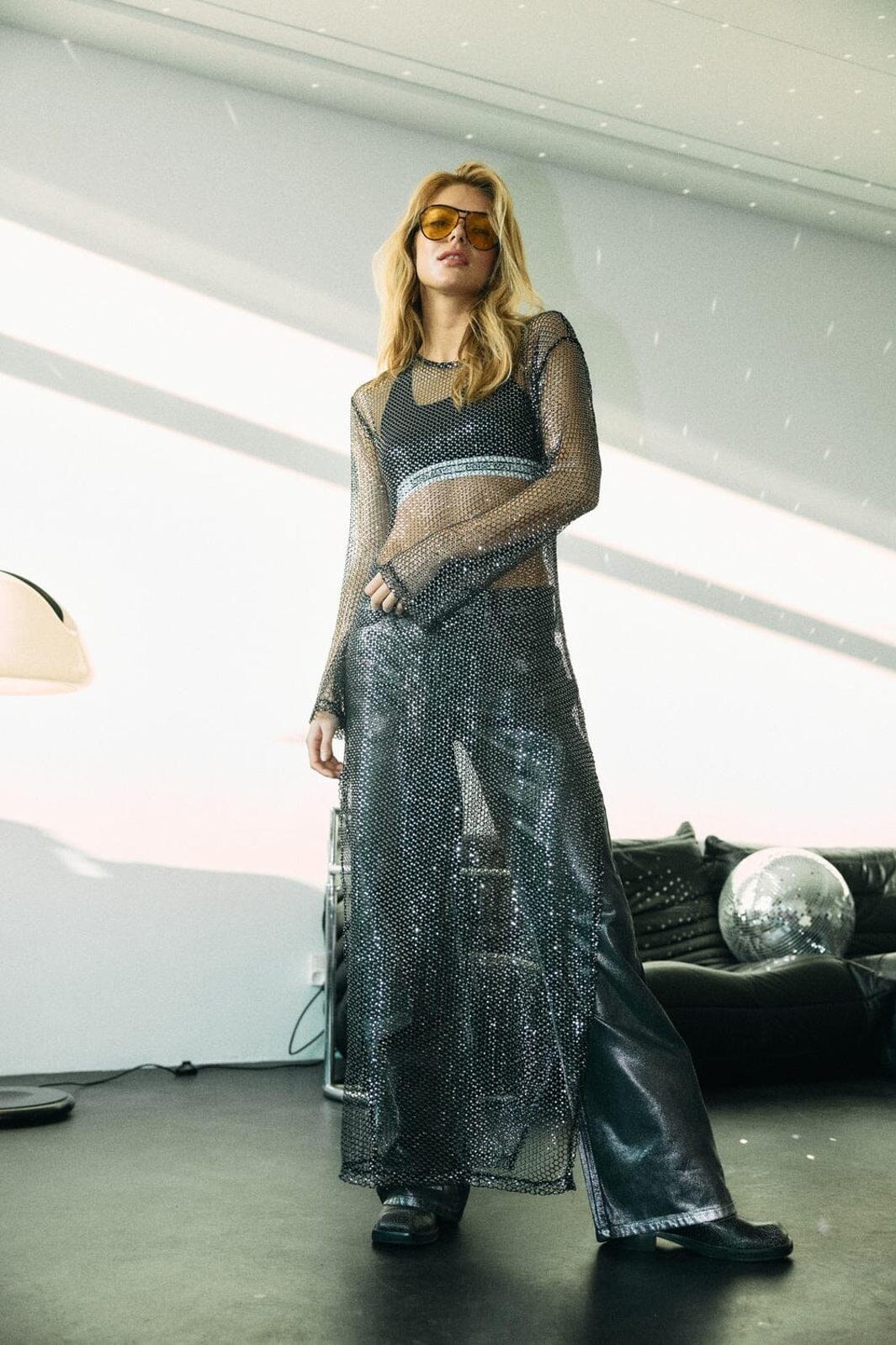 Jeans von Noisy May in mittelblauem Denim mit Silberbeschichtung. Die glänzende Oberfläche kombiniert den Acid-Wash-Effekt mit einem metallischen Schimmer, der den Hosen ihren besonderen Charakter verleiht.